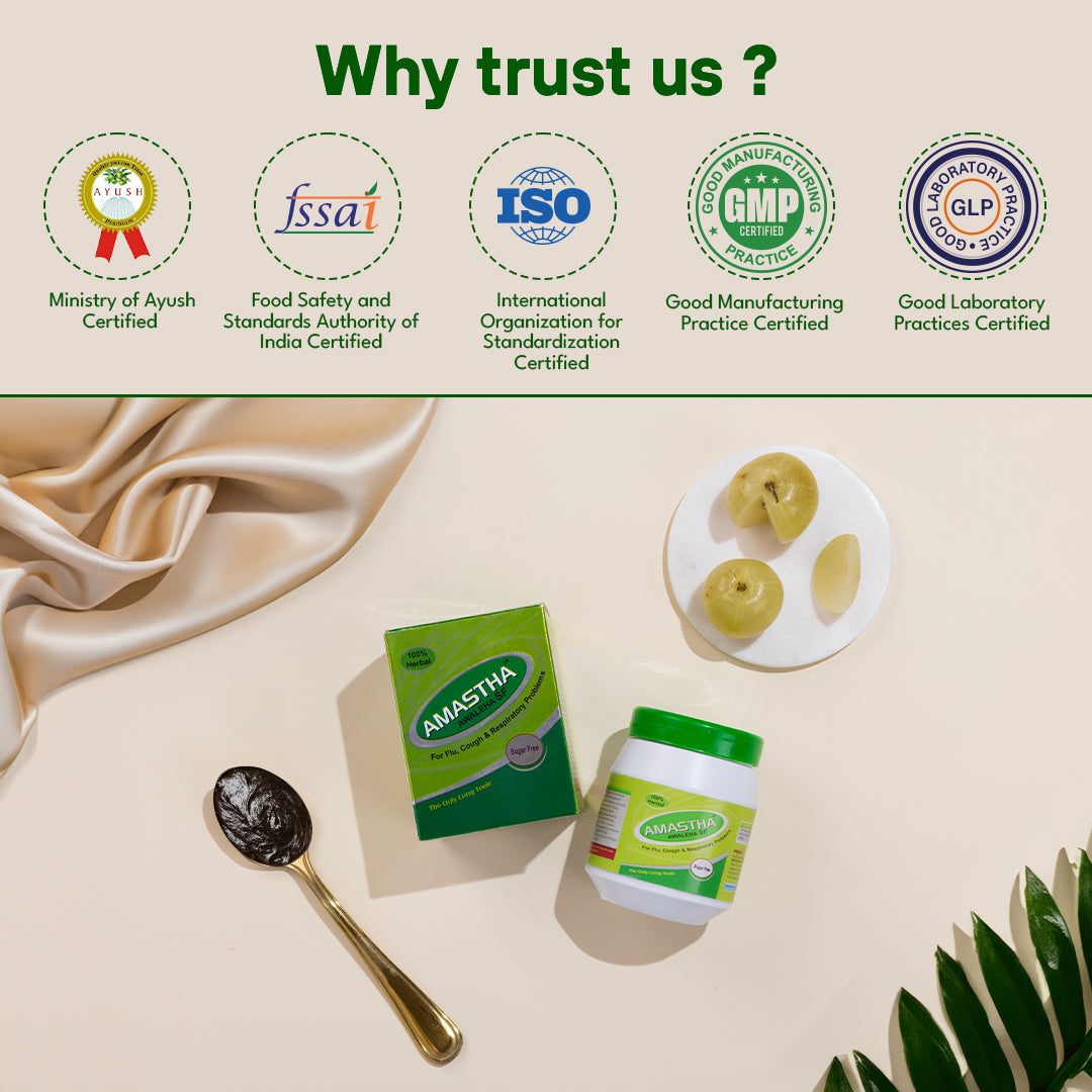 Dosage: 1 to 2 teaspoonfuls, once or twice a day, as directed by a physician. Instructions: Take with lukewarm water. Important information Sugar-free: This version is suitable for diabetics. Certifications: Ayush and FSSAI certified. Prescription: Not required.