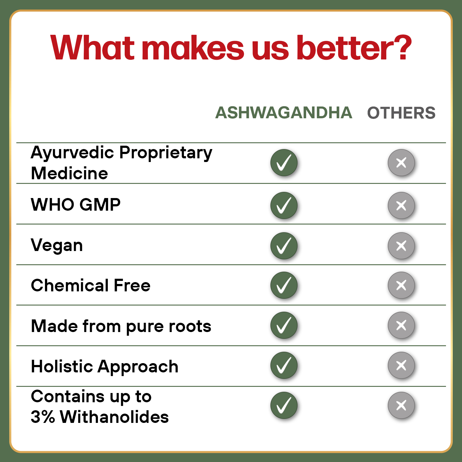 The combination of ingredients offers several health benefits: Helps reduce stress, anxiety, and mental fatigue by potentially lowering cortisol levels. Increases stamina and energy, helping to combat general fatigue. Supports cognitive function, including improving focus and mental clarity. Promotes healthy immune function and hormonal balance. Aids in promoting sound sleep and relaxation. Has also been historically used in Ayurvedic practices for arthritis, constipation, and certain skin conditions. Directions for Use and Safety Dosage: It is generally recommended to take 2 capsules twice a day or as directed by a physician or Ayurvedic expert. Safety Information: Read the label carefully before use. Store in a cool, dry place away from direct sunlight. Keep out of reach of children. Pregnant or breastfeeding women should consult a medical professional before use. Individuals with autoimmune or thyroid disorders should also avoid this product or use under medical supervision.