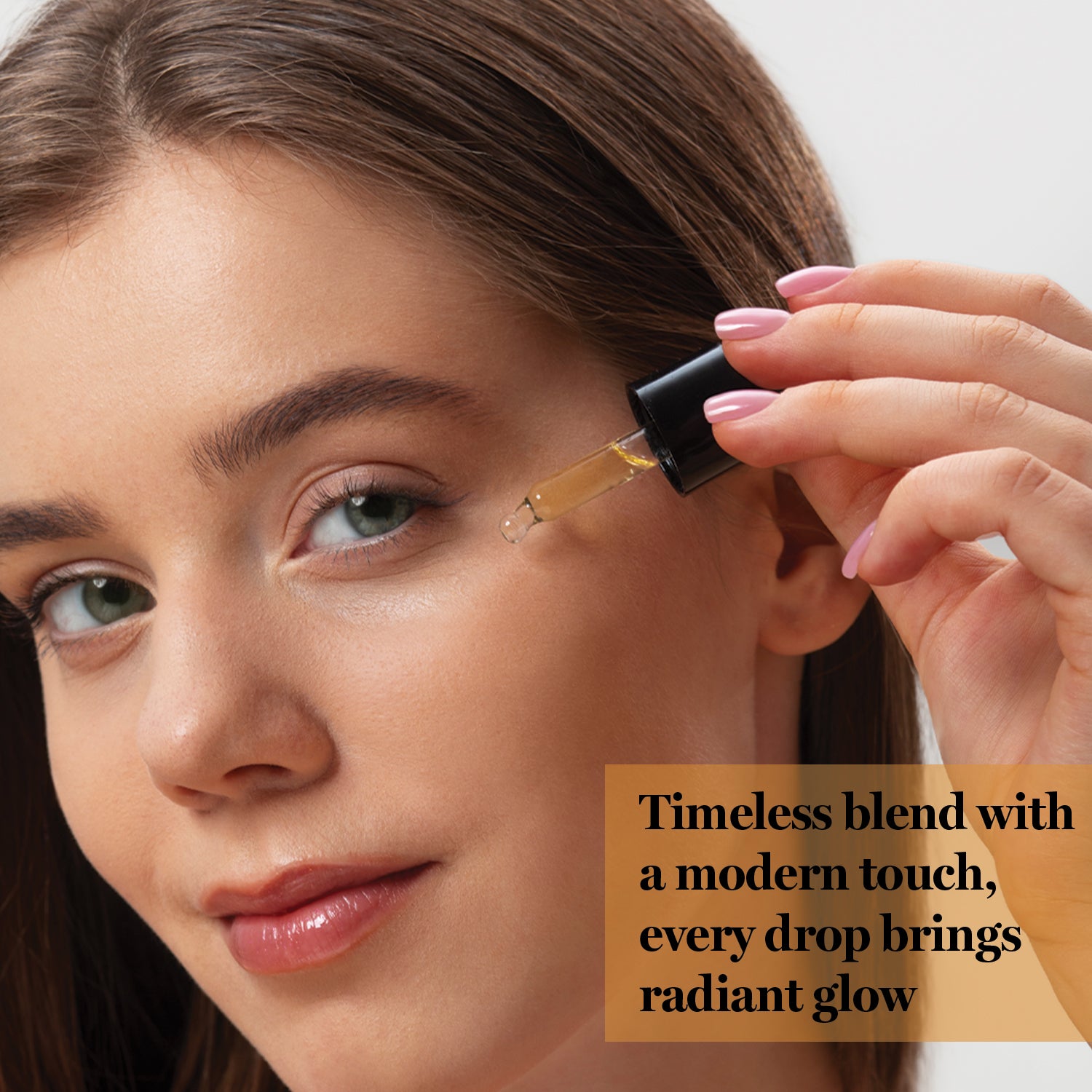 According to sources like the manufacturer's website and product descriptions, the oil contains a potent blend of natural ingredients: Kumkuma (Saffron): The core ingredient known for imparting a golden glow and helping to reduce dark spots. Chandana (Sandalwood): Helps to soothe irritation, reduce inflammation, and cool the skin. Lodhra (Symplocos racemosa): Known for tightening the skin and reducing the appearance of pores. Manjistha (Rubia cordifolia): Helps in detoxifying the skin and promoting an even skin tone. Usira (Vetiver): Provides a cooling effect and has rejuvenating properties. Madhuyastika (Licorice): Works to enhance complexion and reduce pigmentation. Taila (Sesame Oil): The base oil that helps in the absorption of the herbs into the skin.