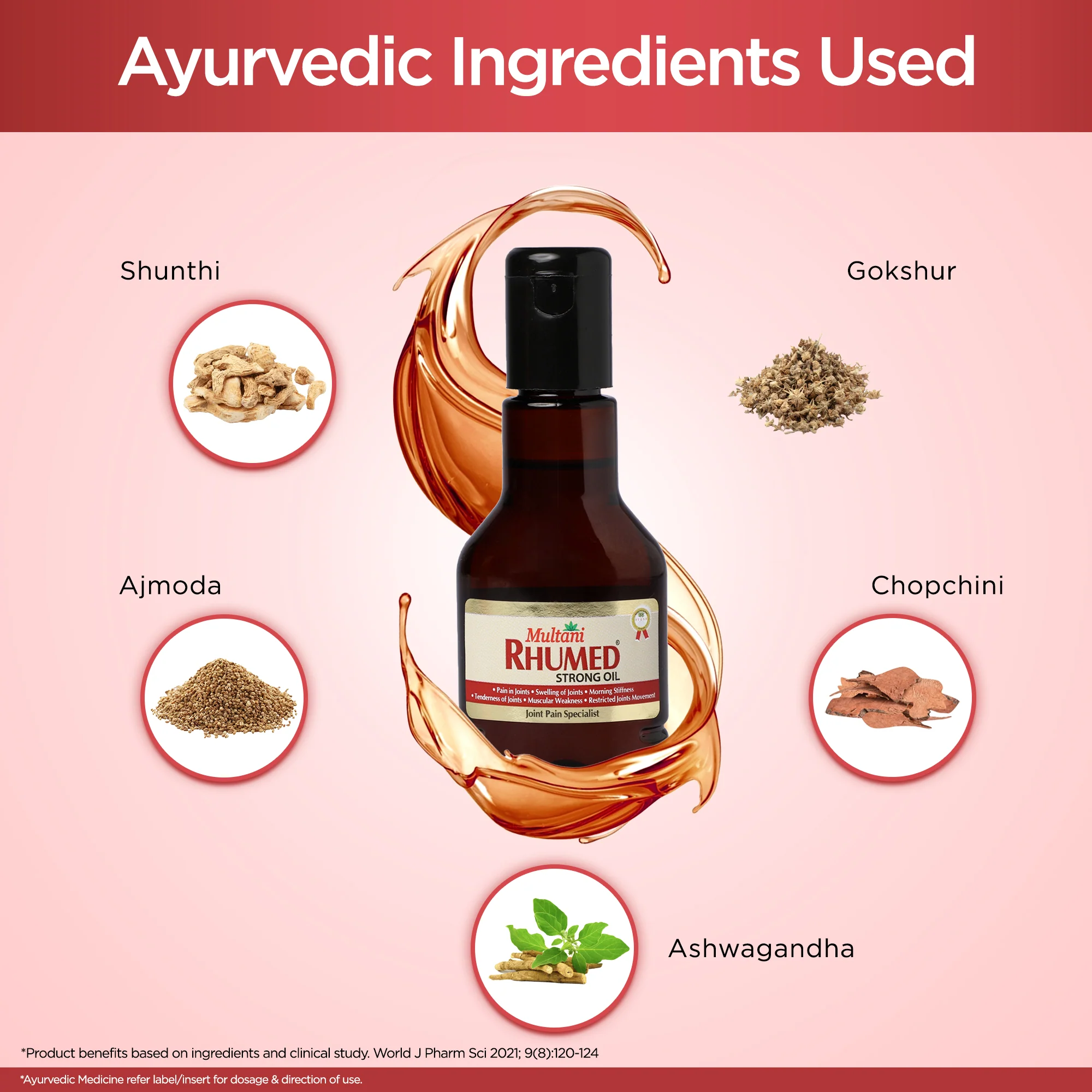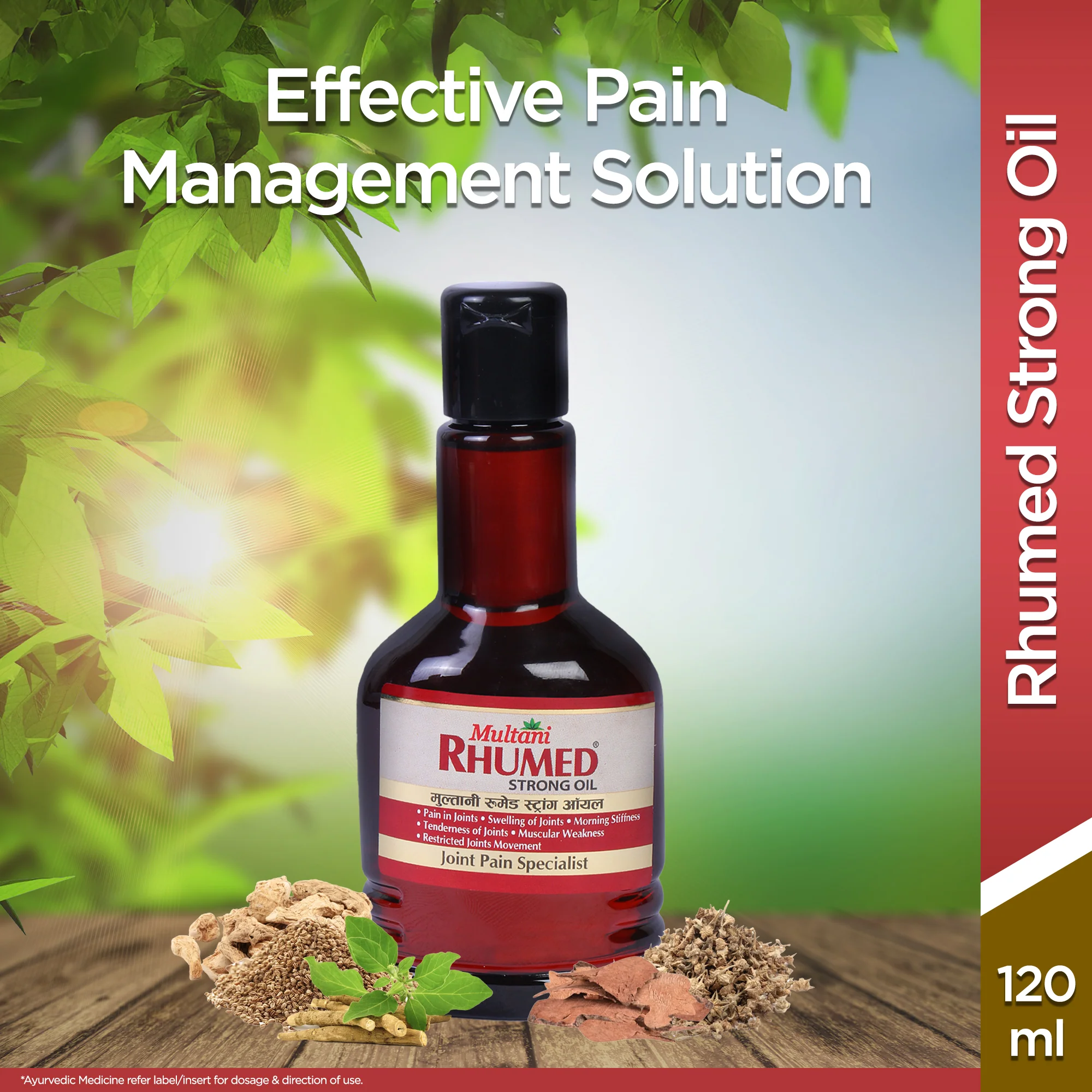 1. Multani Rhumed Strong Oil Has Anti-Inflammatory Properties Which Are Useful In Releiving Joint Pain, Swelling & Stiffness. Our Ayurvedic Formula Is Helpful In Morning Stiffness, Swelling In Joints, Tenderness In Joints, Muscle Weakness And Restricted Joint Movements. 2. Multani Rhumed Strong Oil Is Formulated With Ayurvedic Herbs like Ashwagandha, Gokshuru, Chopchini Which Are Useful In To Muscle Weakness, Swelling, Joint Pain & Joint Stiffness. Sometimes Joint, Back Or Muscle Pain Becomes A Painful Barrier To Keep Up With Active Lifestyle. Our Product Rhumed Strong Oil Helps to Relief the painful symptoms and getting you back Doing The Things You Love. 3. Using With Goodness Of Ayuveda Herbs Like Ashwagandha, Ajmoda, Chopchini, Gokshur & Shunthi, Multani Rhumed Strong Oil Offer Effective Pain Management Solution Which Is Useful In joint Problems. This may Help To Improve Flexibility, Mobility And Reduces Stiffness. 1. Apply Luke Warm Rhumed Strong Oil In suffiecient Quantity On Affected Area & Gently Massage For Few Minutes. 2. Apply 2-3 Times A Day Or As Directed By The Physician. 3. Ayurvedic Medicine refer label/insert for dosage and direction of uses.