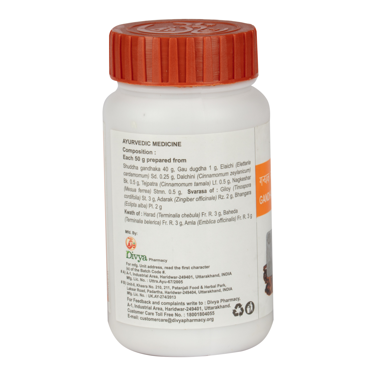 To be taken under medical supervision. As directed by the physician. Shuddha Gandhak, Sharkara, Bhavana - Godugdha, Kwath of Dalchini, Ela, Tamalpatra, Nagkeshar, Guduchi, Haritaki, Bibhitak, Amalaki, Shunthi, Ardrak Swarasa, and Bhrungaraj Swarasa as active ingredients.