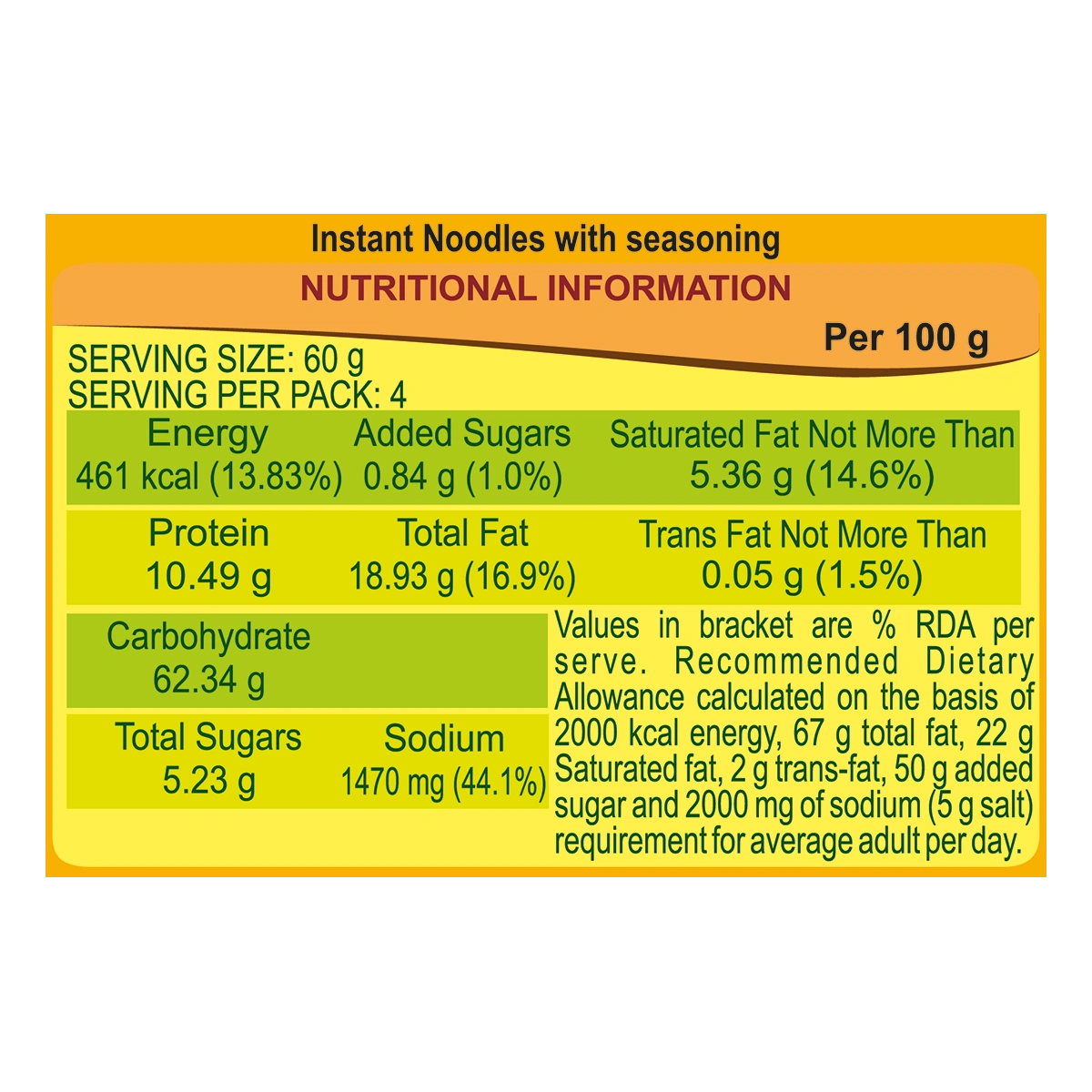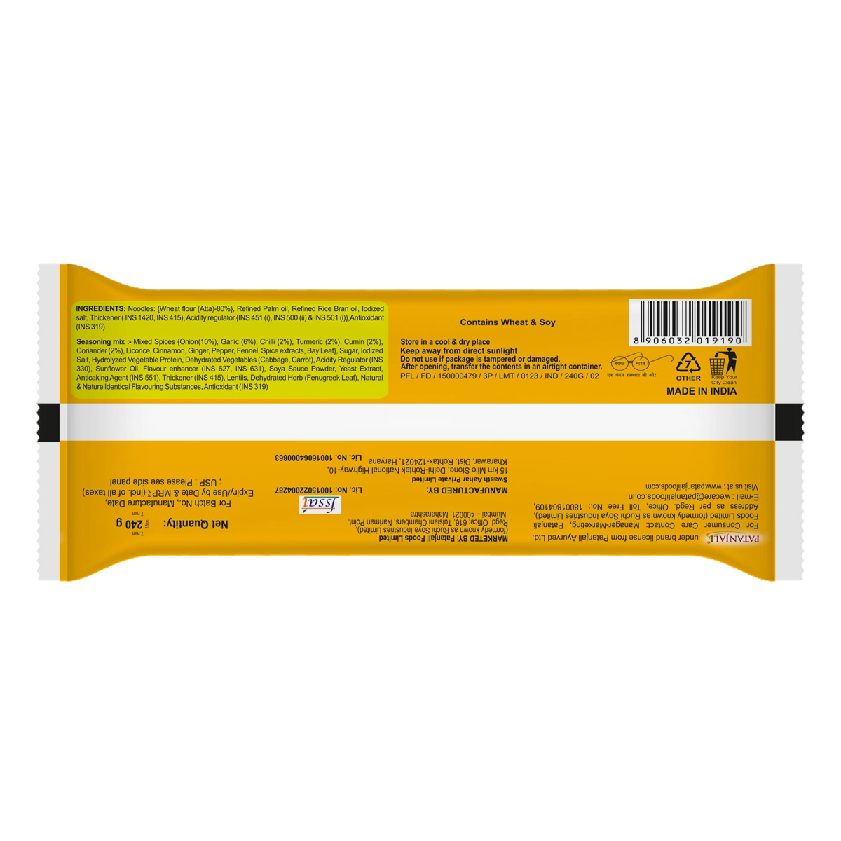 A packet of Patanjali Atta Noodles typically contains wheat flour (atta) and dehydrated vegetables, including onion, garlic, cabbage, and carrot. Infused with spices like chilli, coriander, turmeric, cumin, and garam masala, Patanjali Atta Noodles Classic provides a satisfying and wholesome meal option.