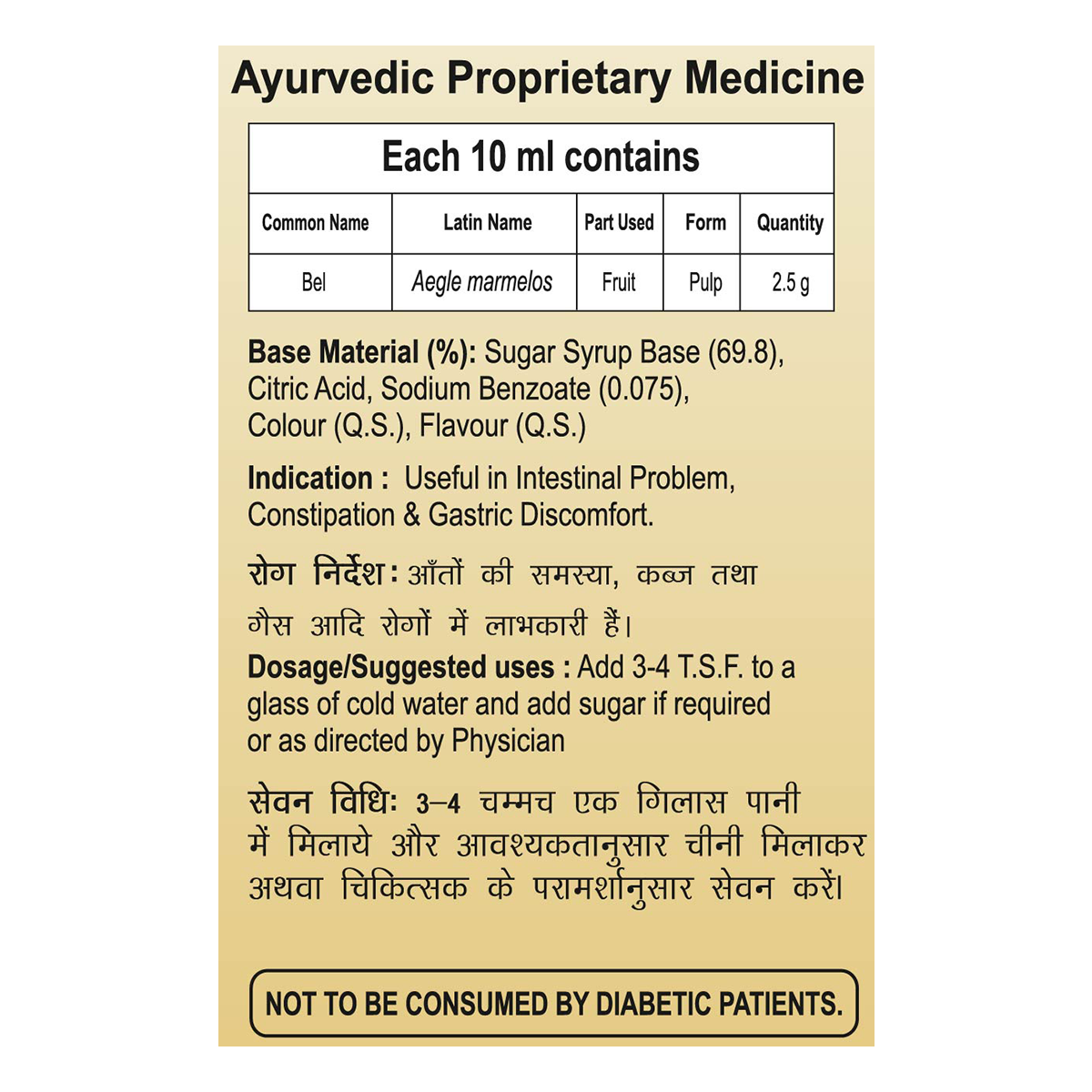 Patanjali Bel Sharbat made with fresh Bel fruit. It is 100% natural. Bel sharbat can beat tribute to its nutritive content, as well as vitamins and including vitamins A, B1, B2, C and minerals calcium, potassium and iron.