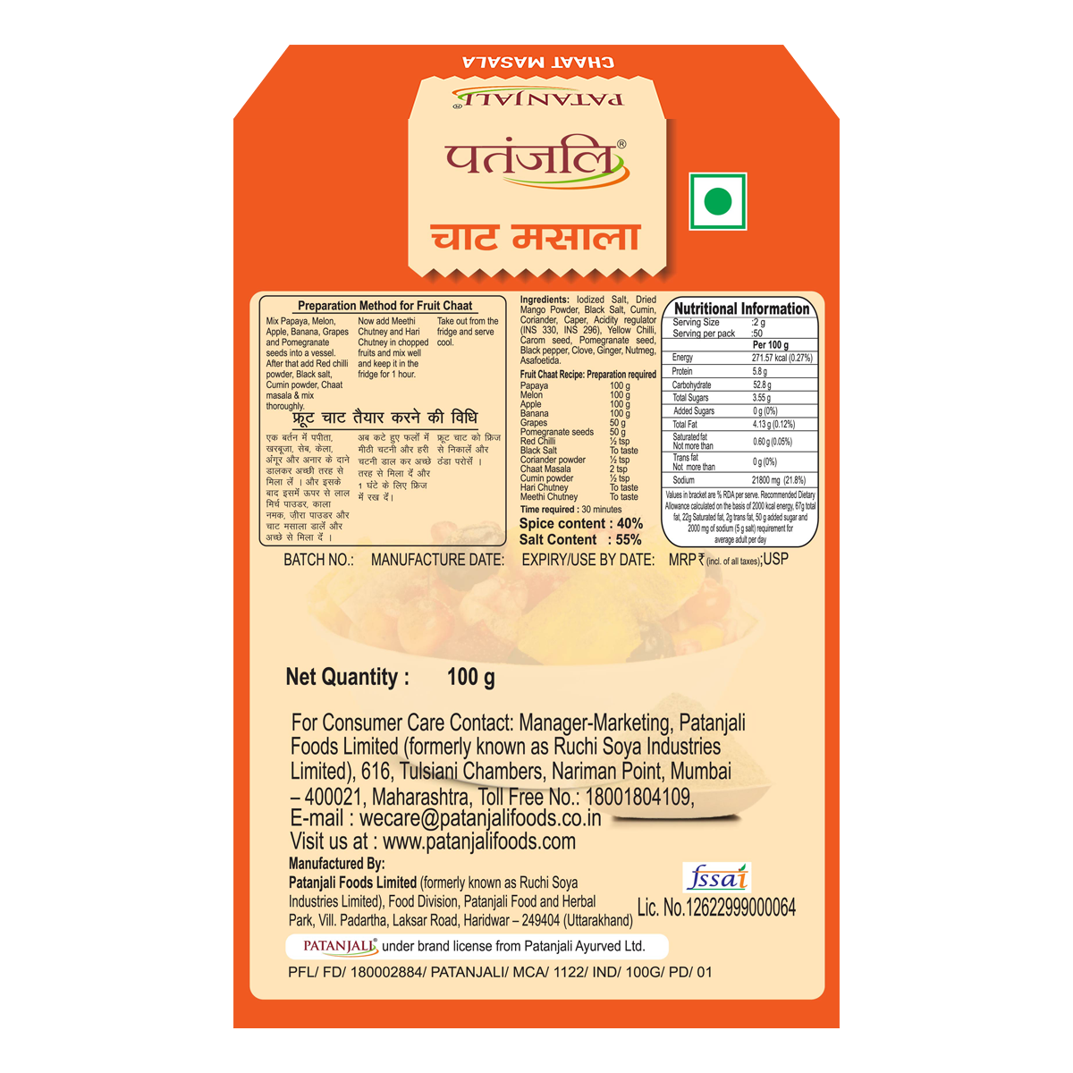 Chaat Masala is a blend of spices that enhances the taste of your favourite dishes. Patanjali chaat masala is an exquisite chaat masala. It is a harmonious blend of aromatic spices expertly curated to infuse a burst of tantalizing flavours into your dishes.