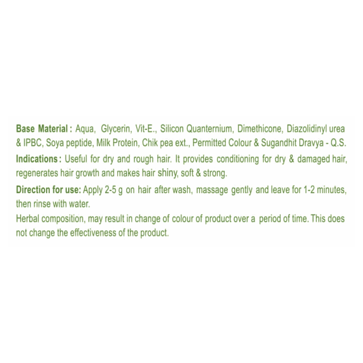 Provides conditioning for dry & damaged hair, regenerates hair growth and keeps hair shiny, soft & strong. Apply 2-5g on wet hair and massage gently, leave for 2-3 minutes and rinse off. Repeat if necessary.