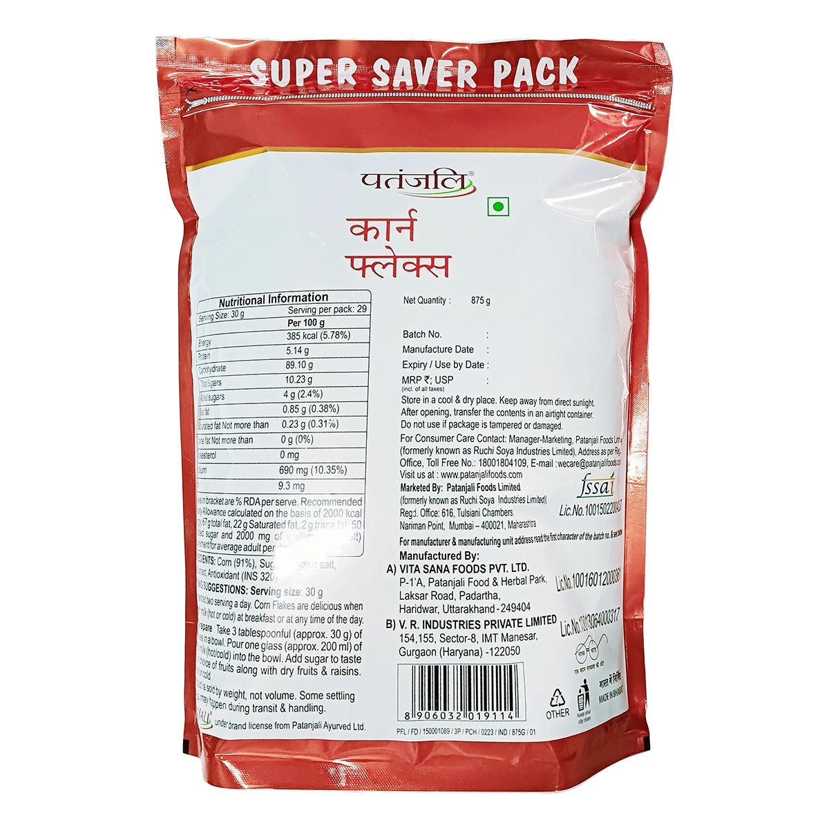 Corn Flakes is a breakfast staple made from toasting flakes of corn (maize). Patanjali Corn Flakes are made from the finest corn grains, carefully selected to ensure optimal taste and texture. Crispy flakes are meticulously prepared to provide you with a wholesome and nutritious breakfast option.
