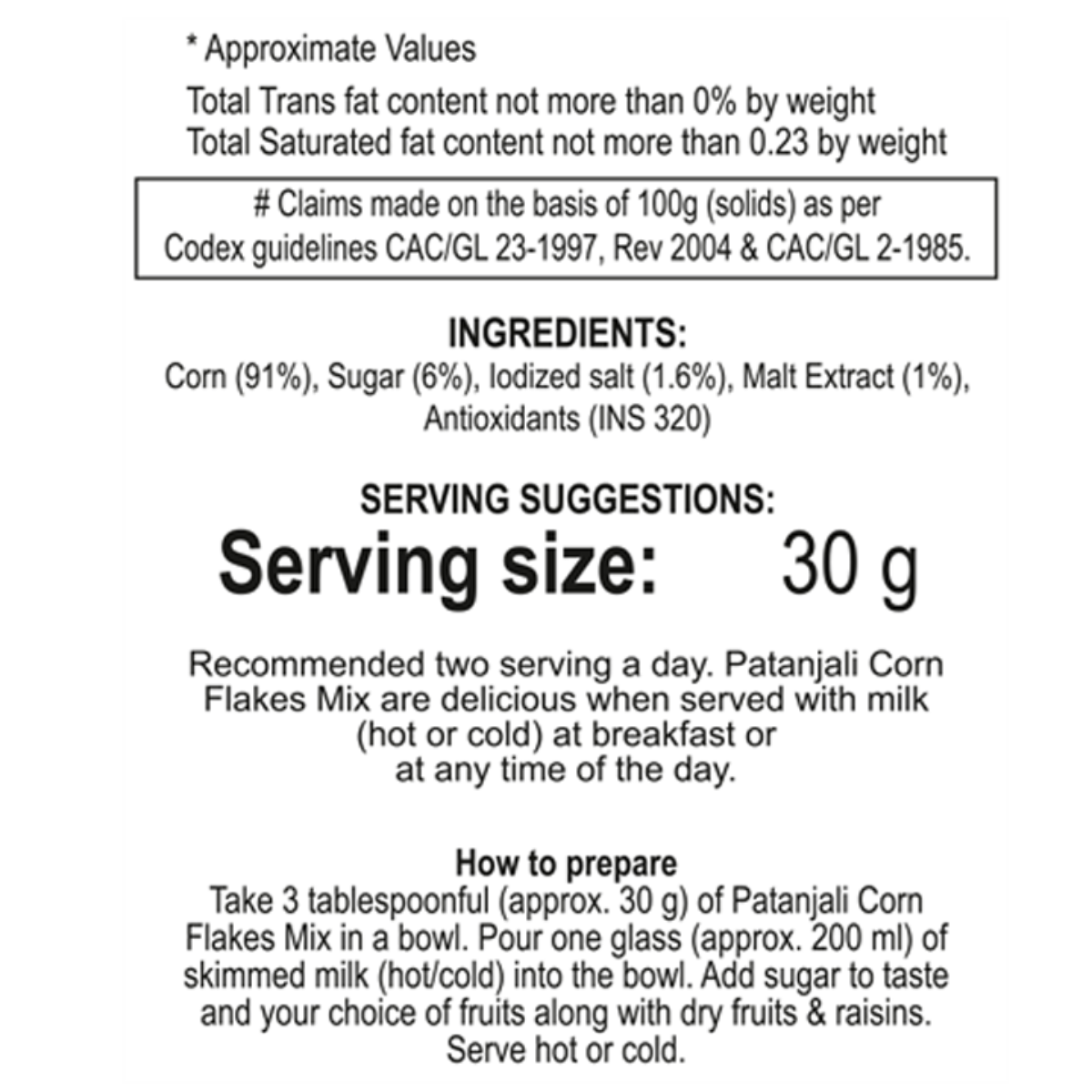 Patanjali Corn flakes are very popular & delicious manufactured through the treatment of corn. When serve with milk (hot & cold) corn flakes are very popular breakfast cereal made by toasting flakes of corn. It can be prepared both type (sweet & salt) with addition of dry fruits.