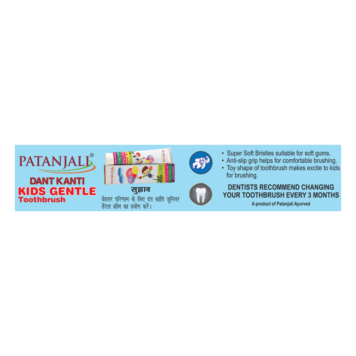 Patanjali dant kanti kids gentle toothbrush is gentle soft for cleaning teeth and gums massage. Gives healthy gums, and strong. Super Soft Bristles suitable for soft gums. Anti-slip grip helps for comfortable brushing. Toy shape of toothbrush makes excite to kids for brushing.