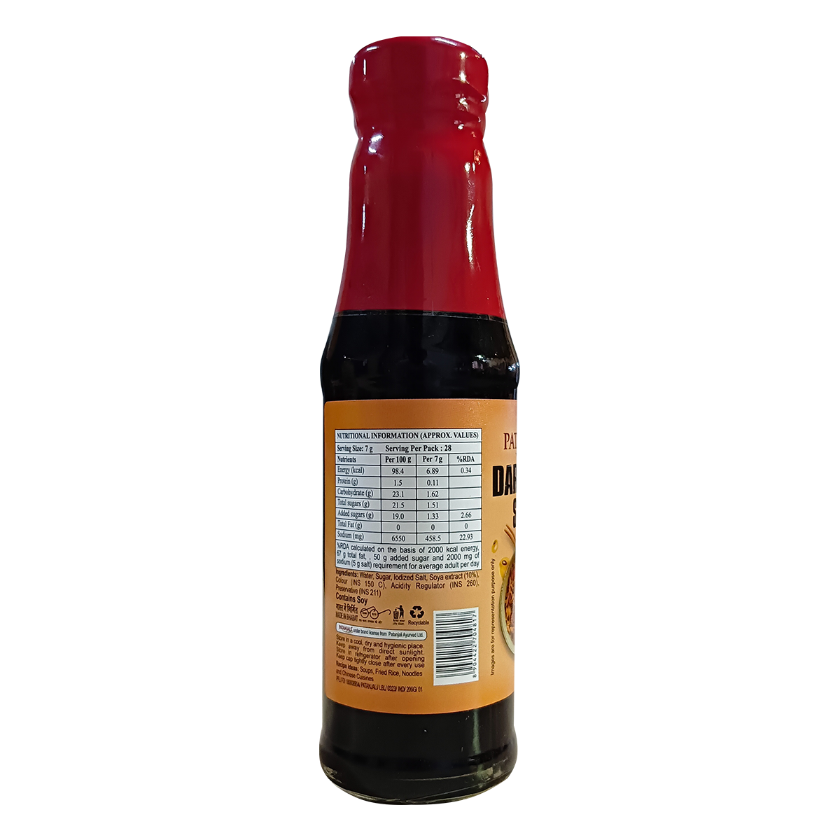 Dark Soya Sauce is a dark-coloured sauce made from Soyabeans. It is a versatile condiment that adds depth and richness to culinary creations. Patanjali dark soya sauce is a premium-quality sauce that is made from high-quality soybeans. Patanjali Dark Soya Sauce boasts a rich, complex flavor profile that is both savory and slightly sweet.