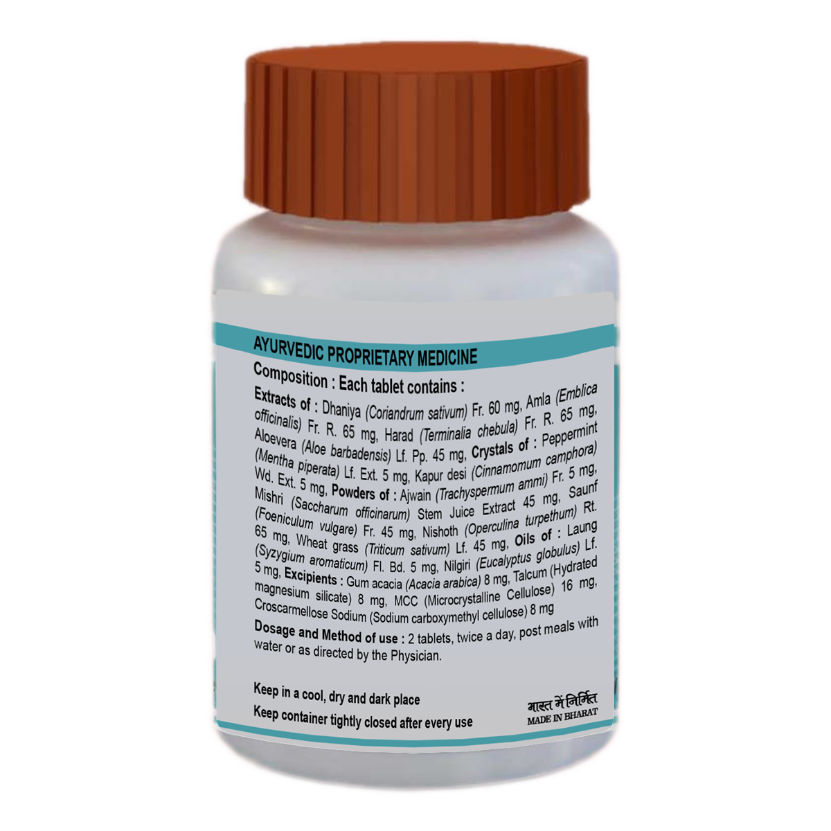 To be taken under medical supervision. 2 tablets twice a day after meals with water or as directed by the physician.