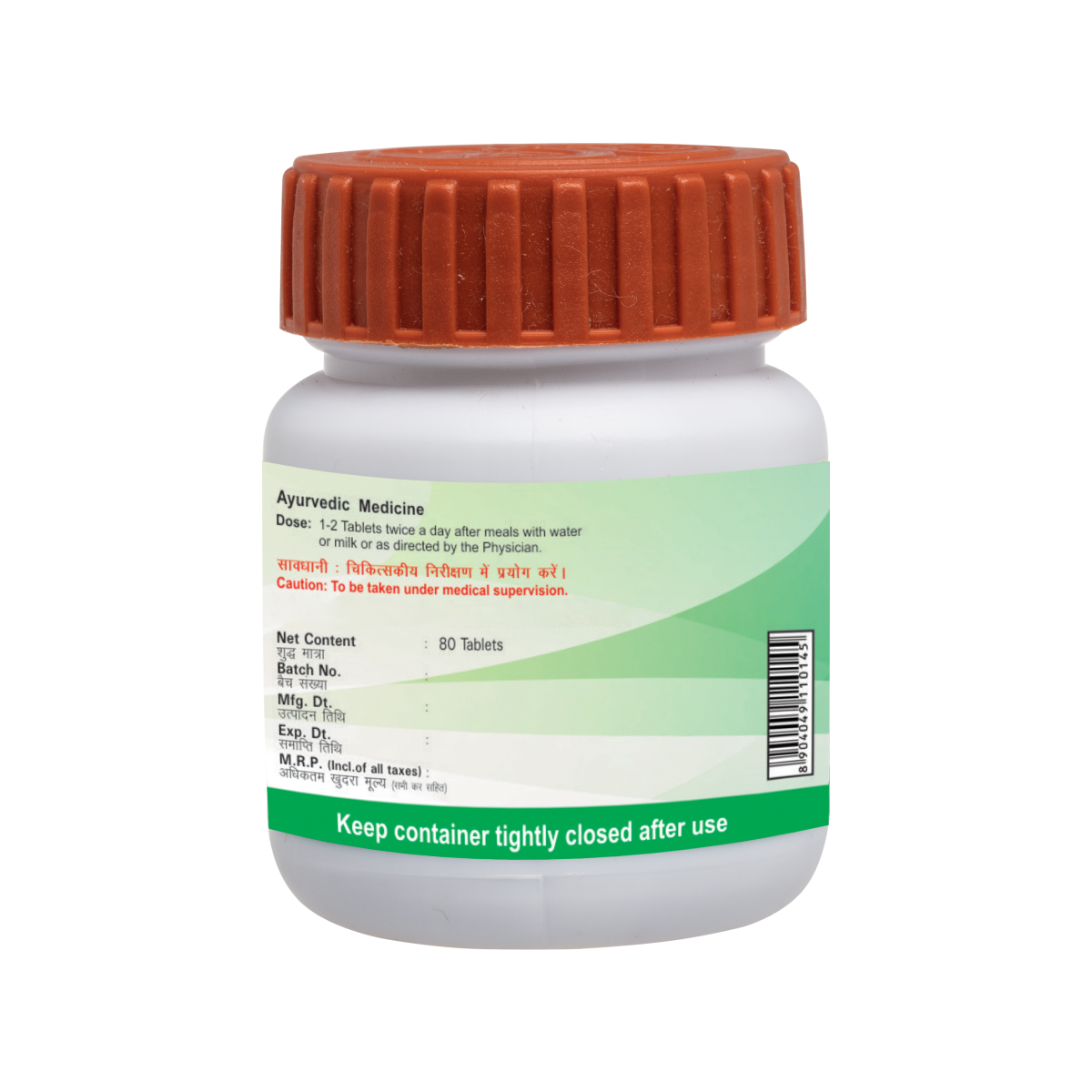 Light to dark blackish brown colour, round biconvex film coated tablet with characteristic odour. Parada shuddha, Gandhaka shuddha, Lauh Bhasma,Abhrak Bhasma, Tamra bhasma,Haritaki,Bibhitaka,Amalaki,Chitrak,Kutki,Shilajeet shuddha,Guggulu Shuddha,Neem patra. To be taken under medical supervision. 250 to 500 mg with Ardraka svarasa, Honey ,Nimba,Svarasa, water or milk twice daily or as directed by the physician.