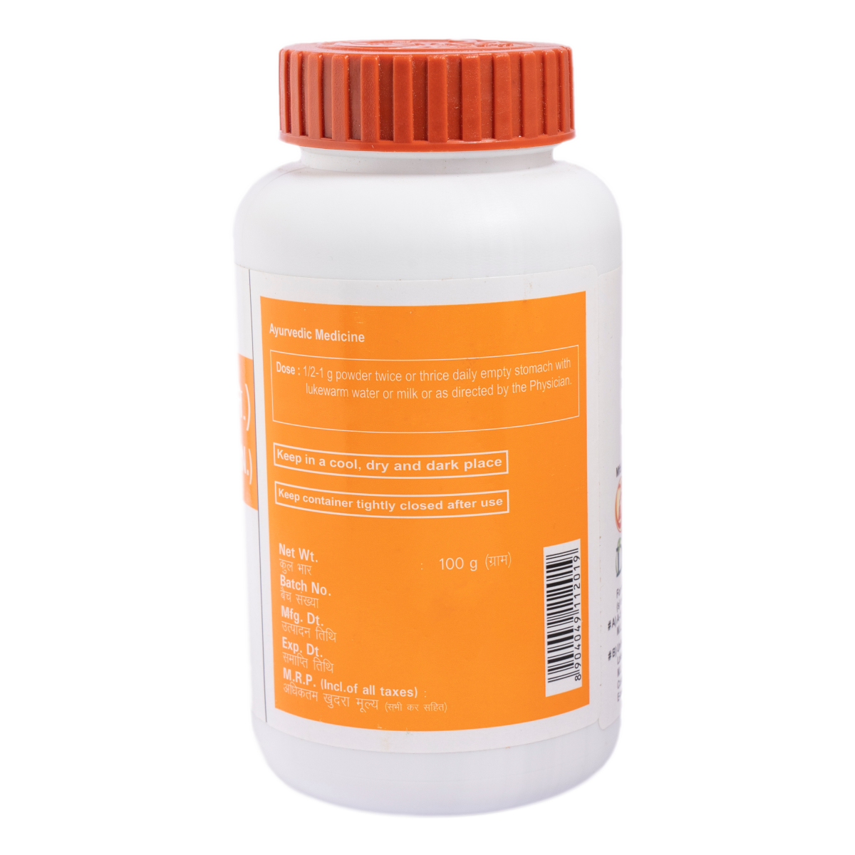 Yellowish green colour, odourless bitter taste, fine powder. To be taken under medical supervision. 1/2-1 g with honey, water or milk or as directed by the Physician.