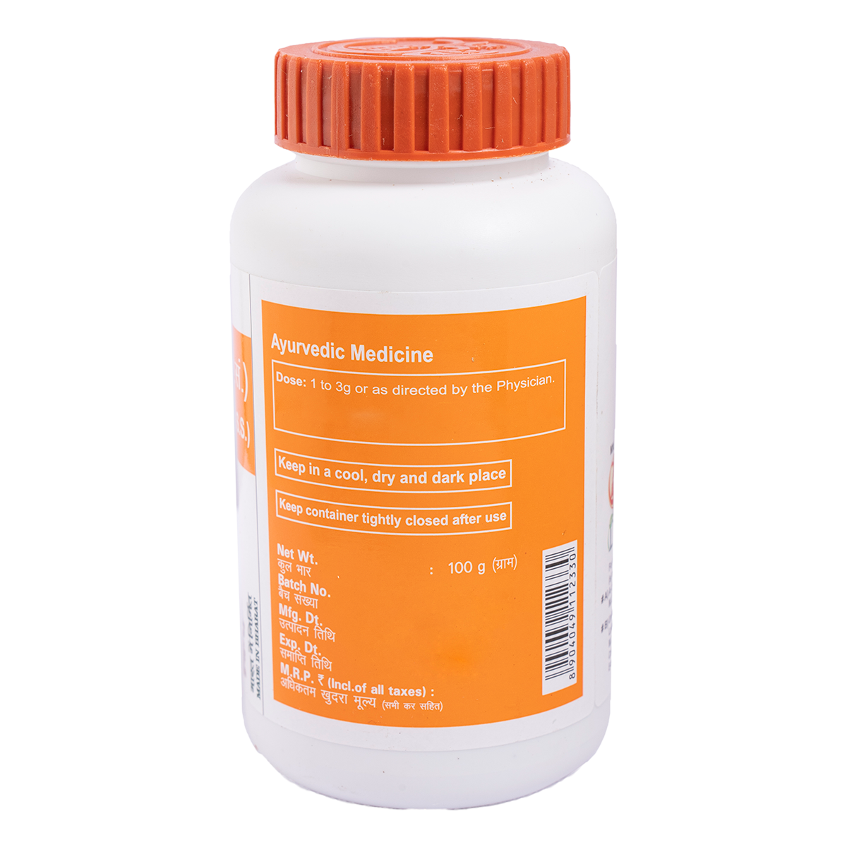 Light brown colour, aromatic, pleasant odour & astringent taste, fine powder. To be taken under medical supervision. 3-6 g or as directed by the physician.