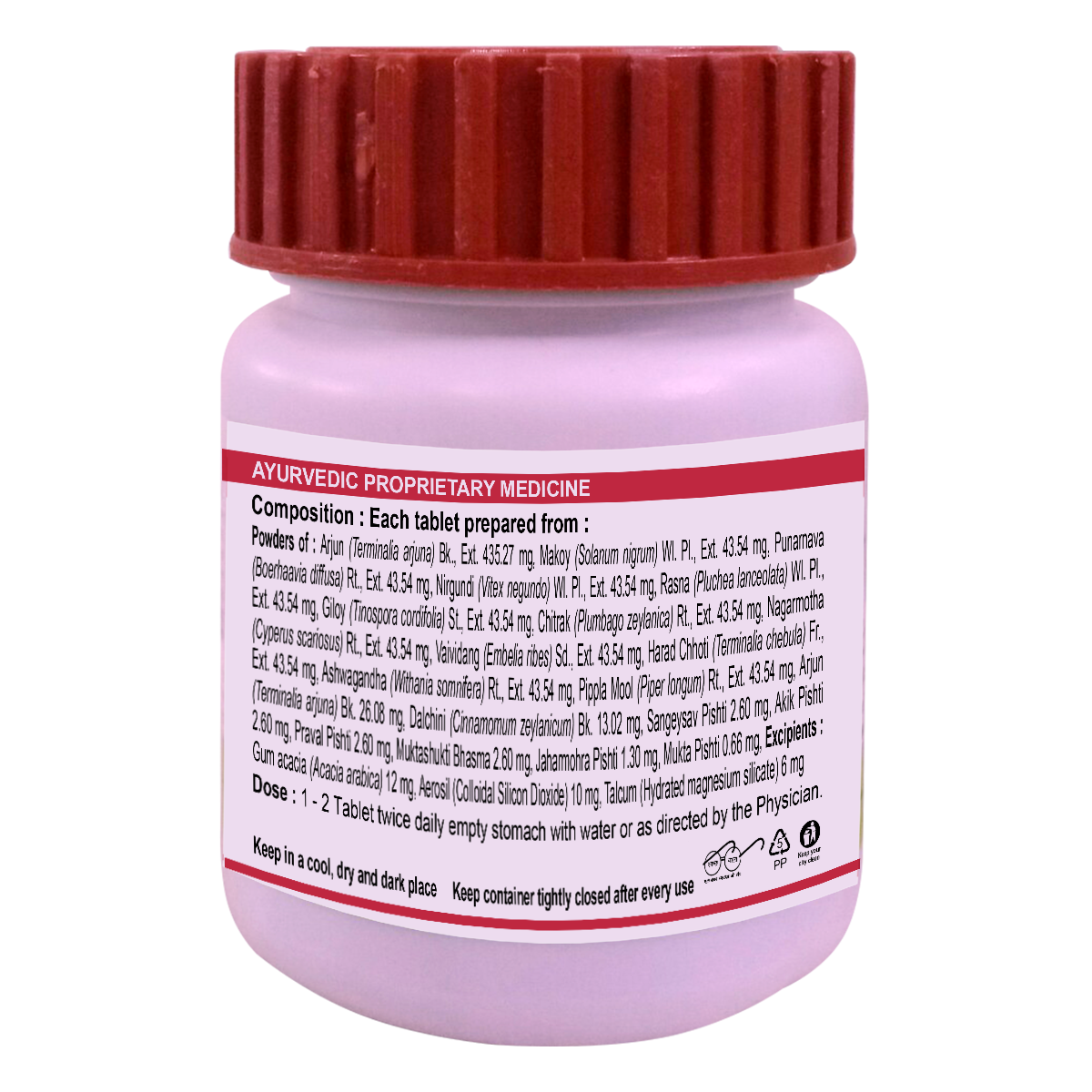 Light to dark brown colour, round biconvex film coated tablet with characteristic odour & taste. To be taken under medical supervision. 1- 2 Tablets twice daily empty stomach with water or as directed by the physician.