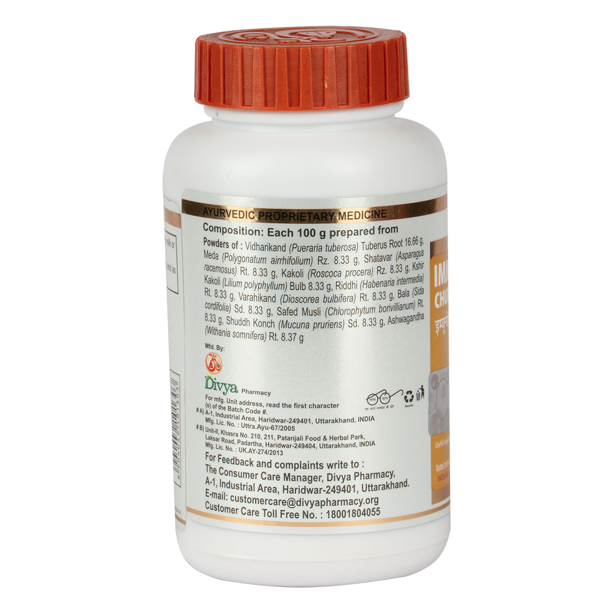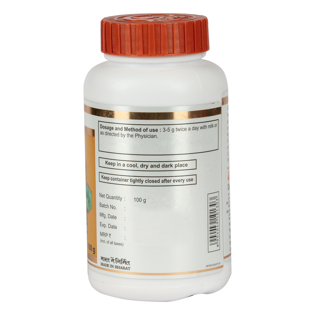 Dark brown colour, characteristic odour & bitter taste, fine powder. Vidarikand, Meda, Shatavar, Kakoli, Kshir Kakoli, Riddhi, Bala, Safed Musli, Shuddh Konch, Ashwagandha,Vidarikand To be taken under medical supervision. 3 - 5 gram twice a day with milk or as directed by the physician.