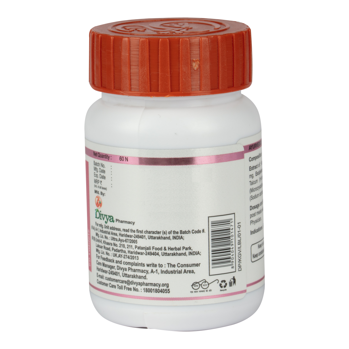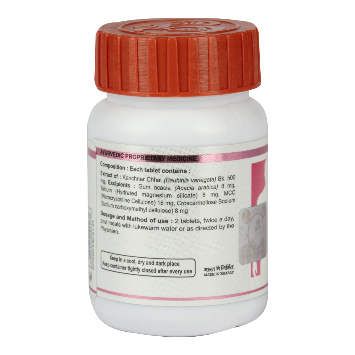 Light to dark brown colour, round biconvex film coated tablet with characteristic odour taste. To be taken under medical supervision. 2 tablets, twice a day, post meals with lukewarm water or as directed bythe Physician.