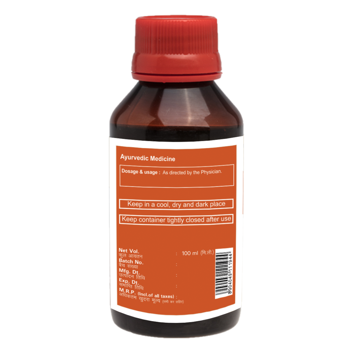 Medicated oil, yellowish brown in colour with unpleasant odour. Bilva (Bel), Aswagandha, Brahti, Gokshur Syonak, Bala, Paribhadra, Kantkari, Rakta Punarnava Atibala, Agnimantha Prasarani, Patala ,Satavari, Rasna, Devdaru ,Kusth ,Salparni , Prsniparni Mudagparni, Masparni, Agaru, Nagkesher,SendhaNamak Jatamansi, Haridra, Daruhaldi, Saileya, RaktaCandan, Pushkar Mool, Choti Ela, Manjhstha, Mulethi,Yasti, Tagara, musta, Tejpatra, Bhringraj Jivaka, Rshabhak, Meda, Mahameda Kakoli, KsiraKakoli, Riddhi, Vriddhi, Hrivera ,Vaca,Palas, Sthauneya, SvetaPunarnava, Coraka, Kapura, Kunkuma, Mrganadaja