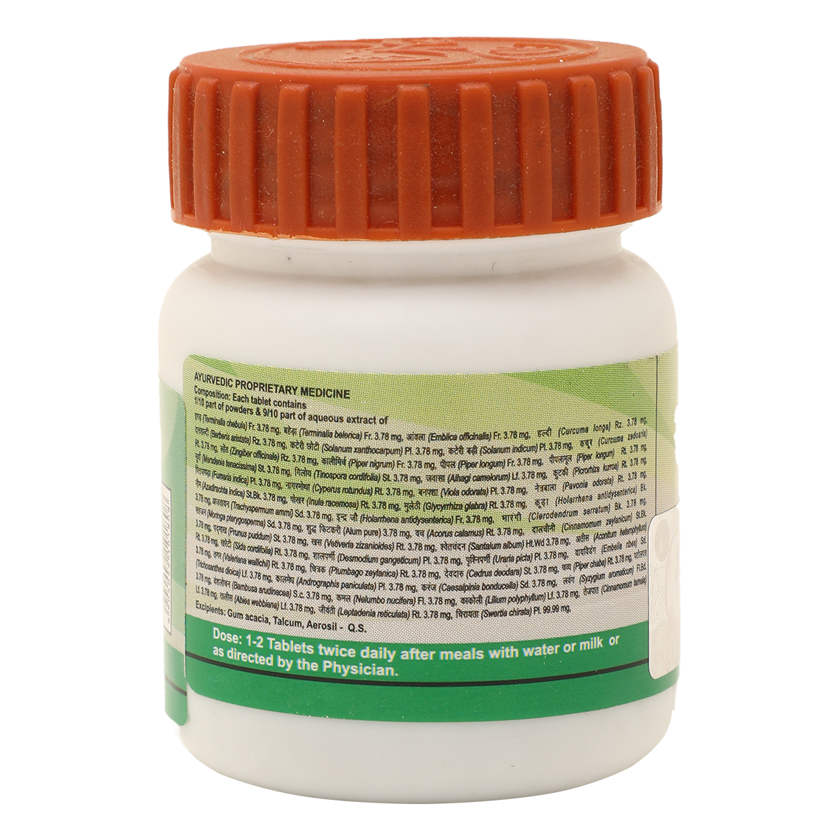 Light to dark blackish brown colour, round biconvex film coated tablet with characteristic odour. To Be Taken Under Medical Supervision. As directed by the physician.