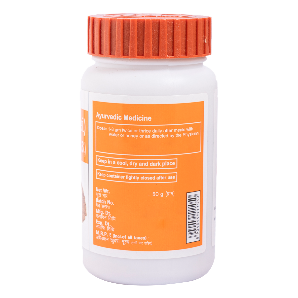 Brown colour, characteristic odour & slightly pungent taste, fine powder. To be taken under medical supervision. 1-2 g with lukewarm water, honey or milk or as directed by the physician.