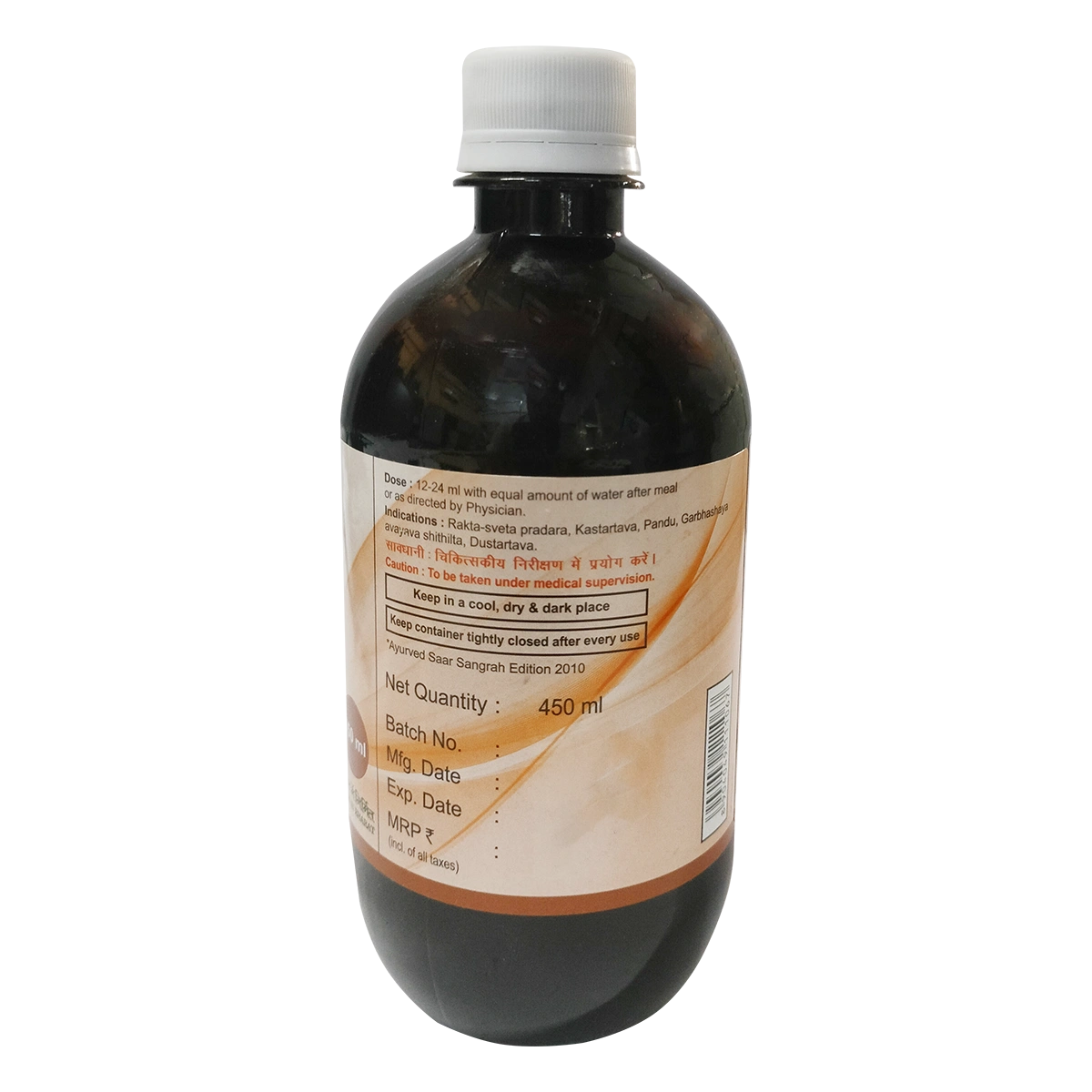Clear, dark brown liquid without frothing & significant sedimentation with bitter taste. Patangkasth, Khair, Vasak, Semal phool, Knarelli, Shuddha bhilava, Kali sariva, Safed sariva, Gudhal, Chirayta, Post ka doda, Aam, Daruhaldi, Sabred jira, Lauh bhasma, Rasaut, Kesar, Laung, Munnaka , Dhaiphool, Belgiri , Bhangra,, Dalchini, Shahad, Water To be taken under medical supervision. As directed by the physician.