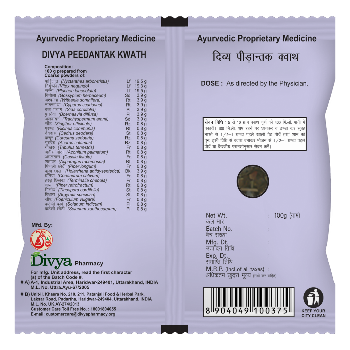 To be taken under medical supervision. Boil 5- 10g of kwath in 400ml watertill 100 ml water. Take twice daily empty stomach or as directed by Physician.