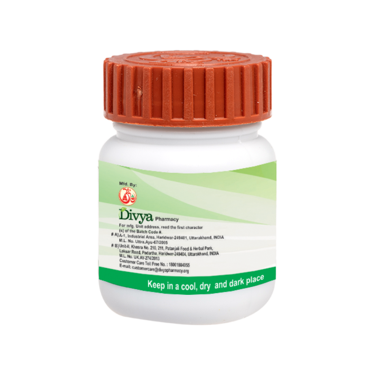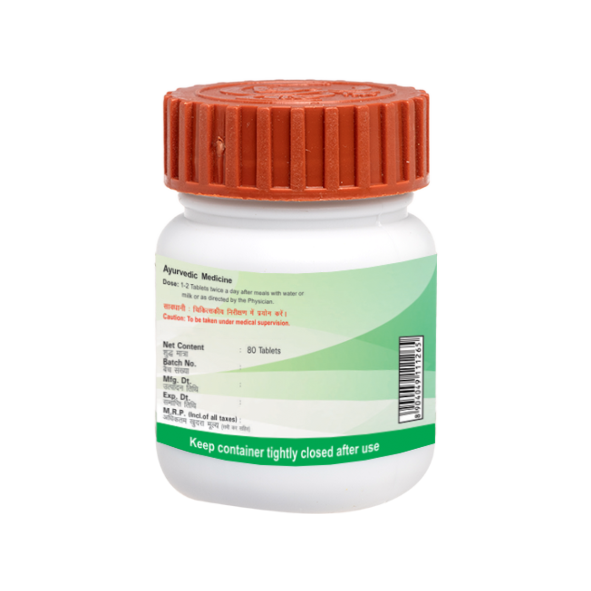Light to dark brown colour, round biconvex film coated tablet, pleasant odour acrid taste. Vayavidanga ,Sonth ,Pippali ,Harad ,Baheda ,Amla ,Vach ,Giloy ,Bhilawa Shudhha,Vatsanabha Shudhha. To be taken under medical supervision. 1-2 tablets twice with lukewarm water thrice daily or as directed by the physician.
