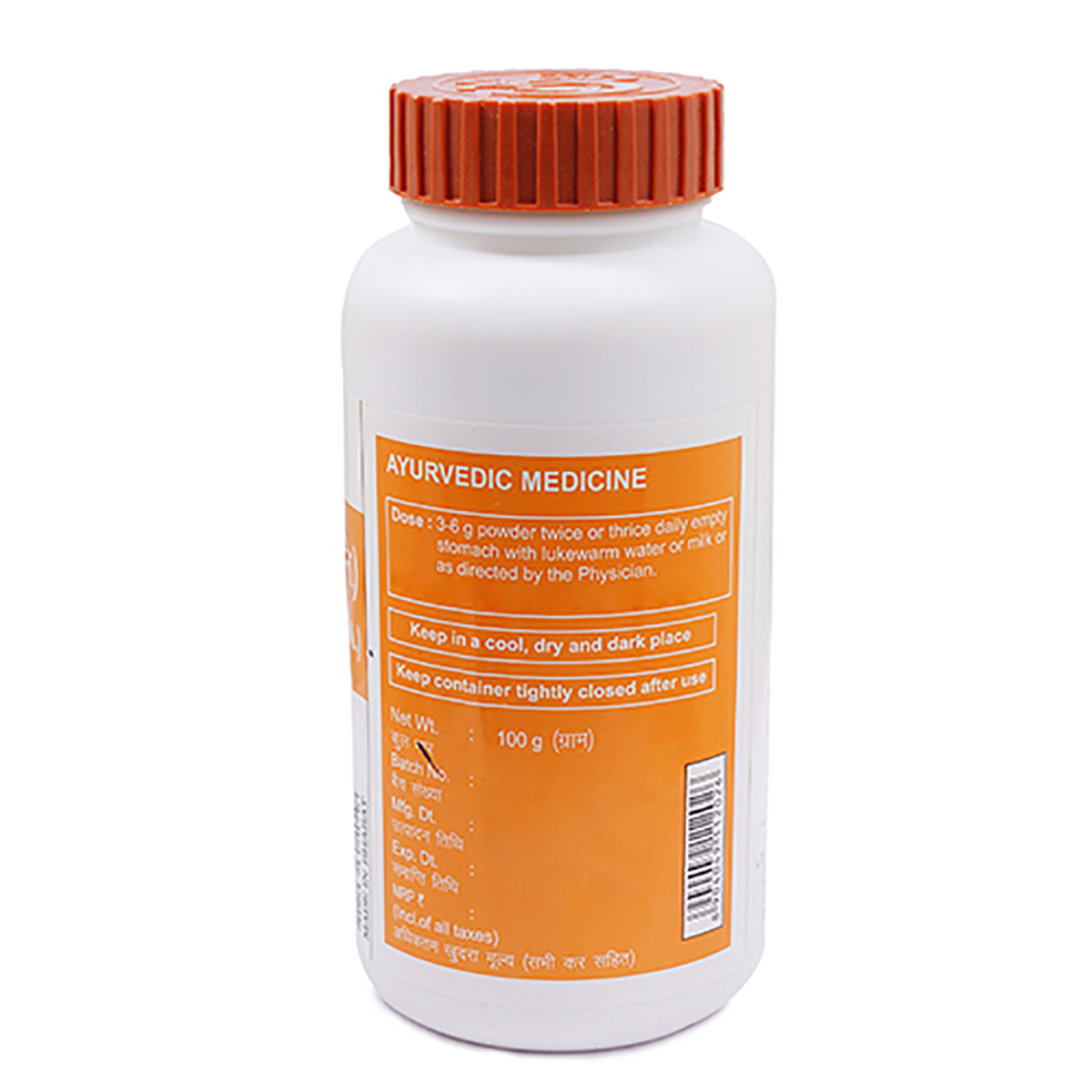 Light green colour, characteristic odour & bitter taste, fine powder. To be taken under medical supervision. 3-6 g or as directed by the physician.