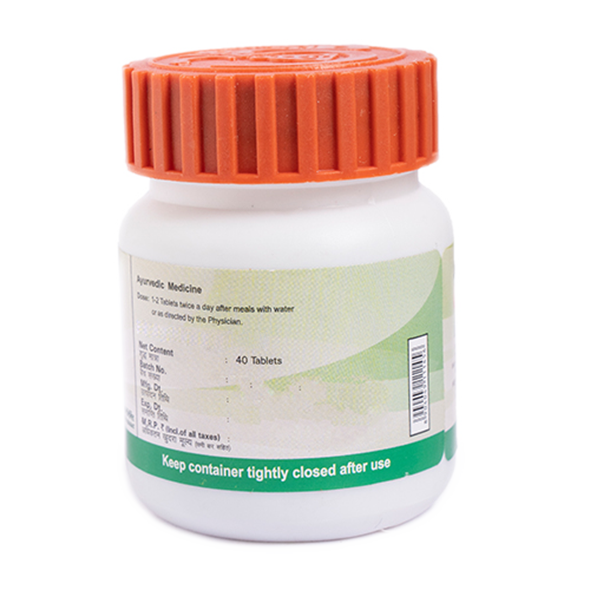 Light to dark grayish brown colour, round biconvex film coated tablet aromatic odour and unpleasant taste. Baheda, Harad , Amla, Sudh Gandhak, Earend Tail , Shudh Guggul To be taken under medical supervision. 1-1 Tablet morning - evening with milk or lukewarm water or as directed by the physician.