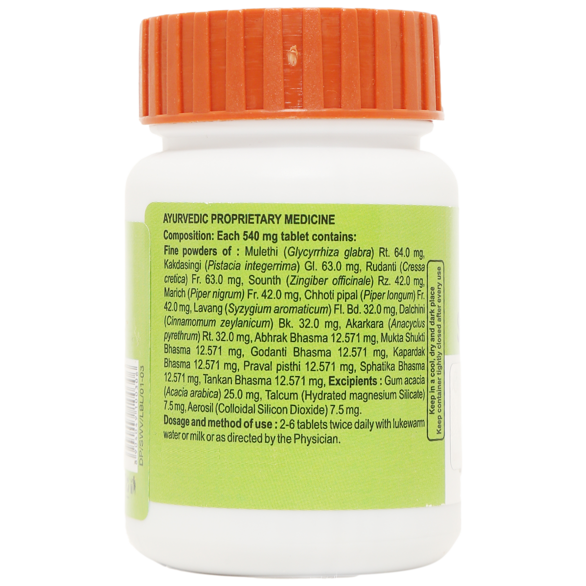 Mulethi, Kakdasingi, Rudanti ,Sounth, Marich, Chhoti Pipal, Lavang, Dalchini, Akarkara, Abhrak Bhasma, Mukta Shukti Bhasma, Godanti Bhasma, Kapardhak Bhasma, Praval Pishthi, Sphatik Bhasma, Tankan Bhasma As directed by the physician.