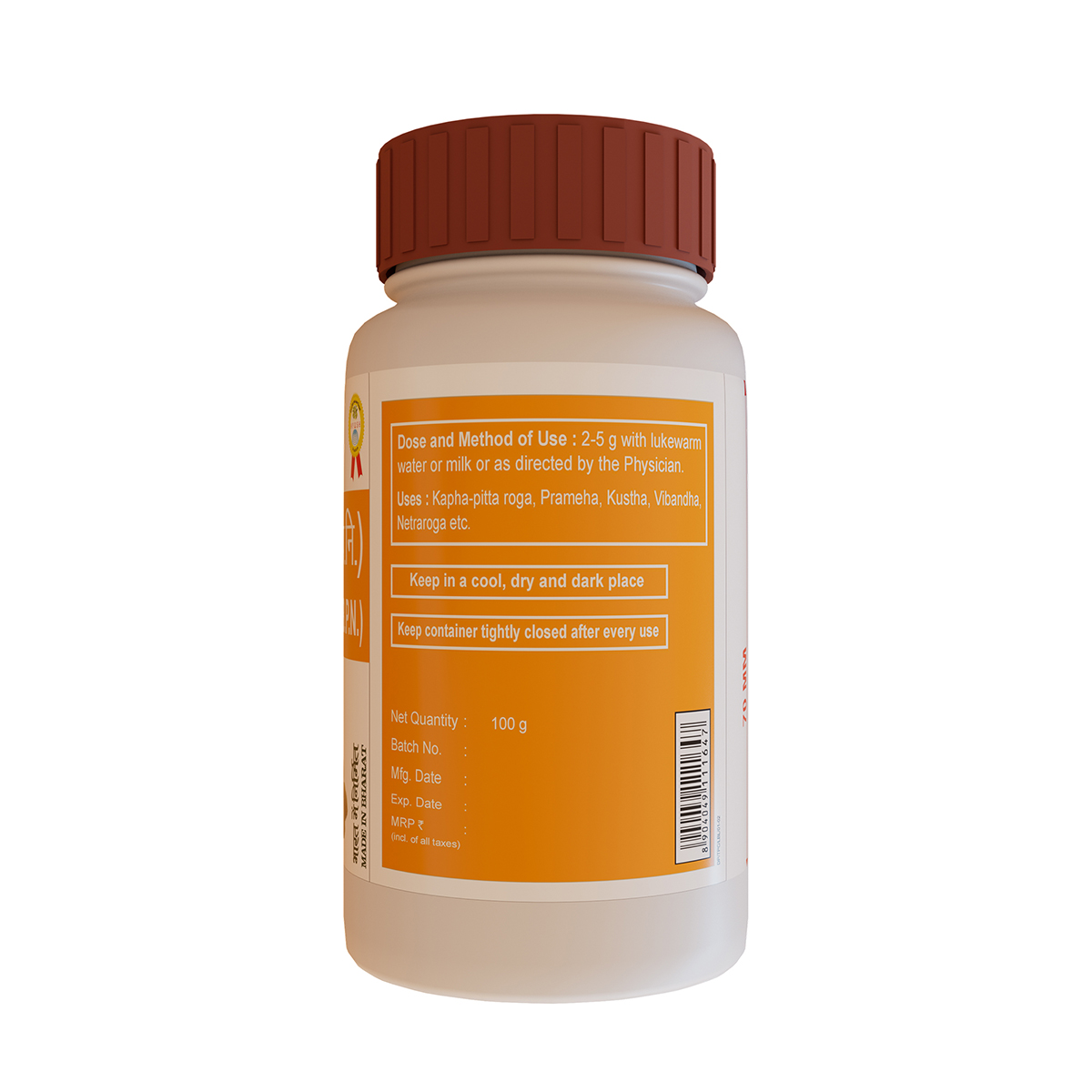 Greenish yellow colour, pleasant odour & astringent taste, fine powder. To be taken under medical supervision. Use as directed by a healthcare professional.