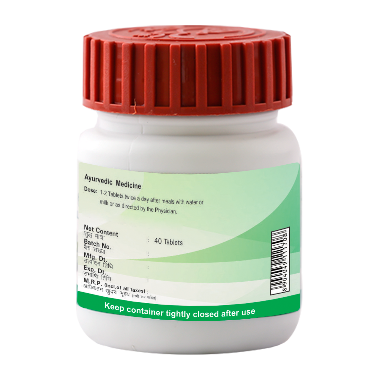Light to dark greenish brown colour, round biconvex film coated tablet, agreeable odour & bitter tasteBabul, Ashwagandha, Hauber, Giloy Satva,Shatavar, Shudha Vidhara, Gokhru, Saunf, Kachur, Ajwain, Sonth, Shuddha Guggul To be taken under medical supervision. 1-2 tablets twice daily with milk or lukewarm water or as directed by the Physician.