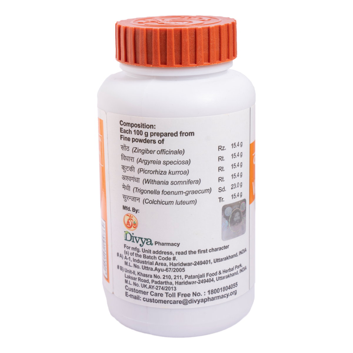 Light brown colour, characteristic odour & slightly pungent taste, fine powder. Sounth,Vidhara, Kutki, Ashwagandha, Methi, Suranjan To be taken under medical supervision.