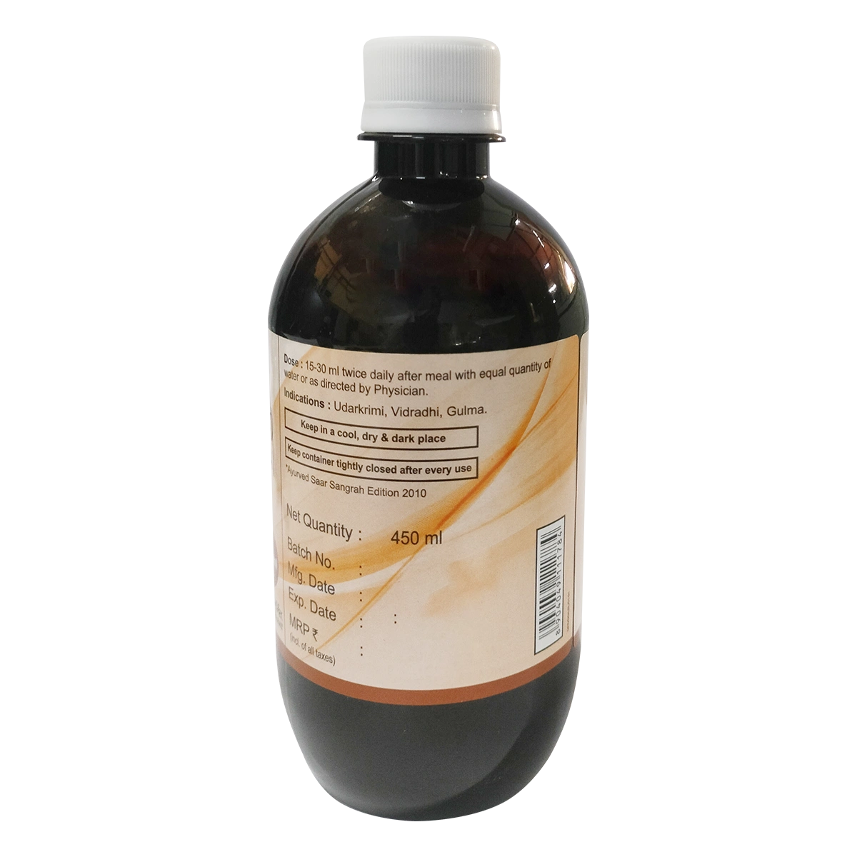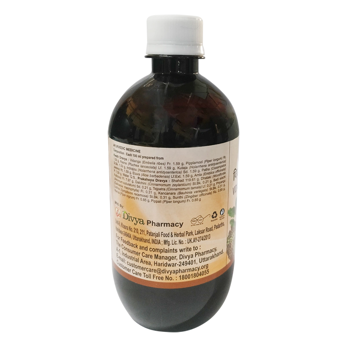 Clear, dark brown liquid without frothing & significant sedimentation with bitter taste. Kwath Dravya: Vidanga, Pipplamool, Rasna , Kutaja, Indrajou, Patha , Water Prakshepa Dravya : Shahad , Dhataki , Eluva, amla , Dalchini , Badi elachi, Tejpatra, Priyangu , Kancanara, Lastera , Sunthi , Waka , Pippali To be taken under medical supervision. 15-30 ml twice daily after meal with equal quntity water or as directed by the physician.