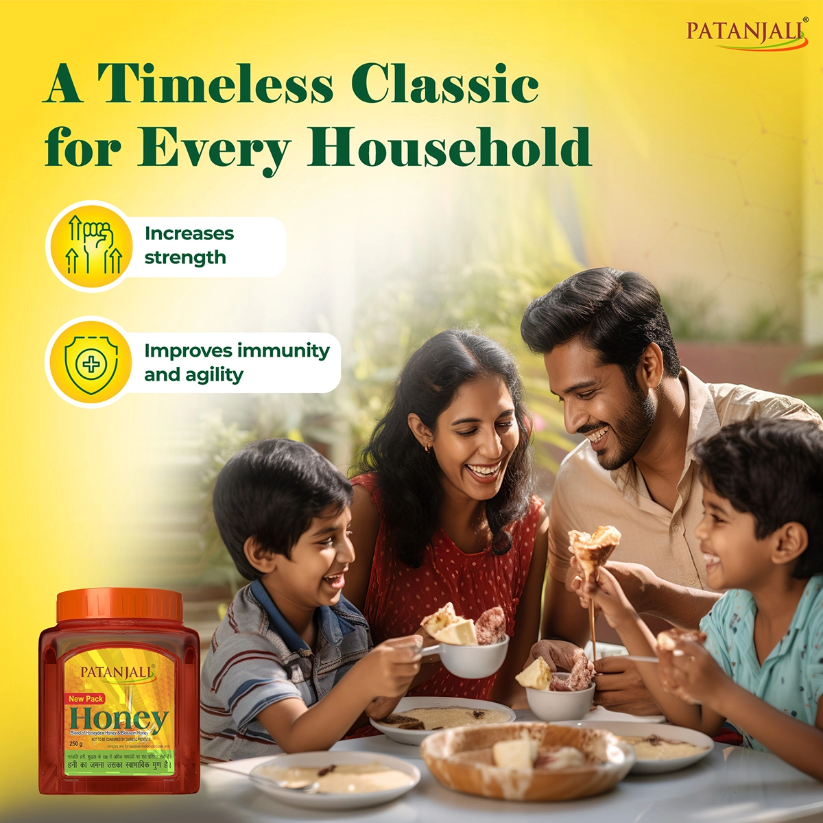1.Blend of Honeydew Honey & Blossom Honey 2.Not to be consumed by Diabetic patients 3.Patanjali Honey is 100% pure on more than 100 parameters of purity. 4.The setting of honey is its natural quality. 5.Honey is a good source of natural sugar & minerals.