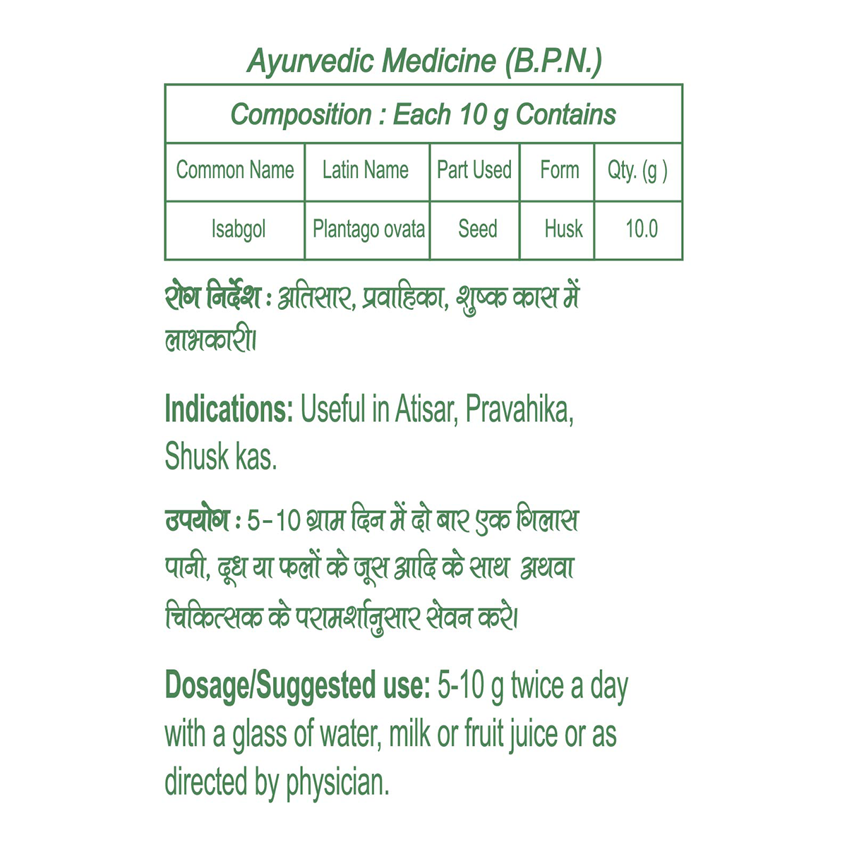 As directed by physician. 5-10g twice a day with a glass of water, milk and fruit juice or as directed by physician.