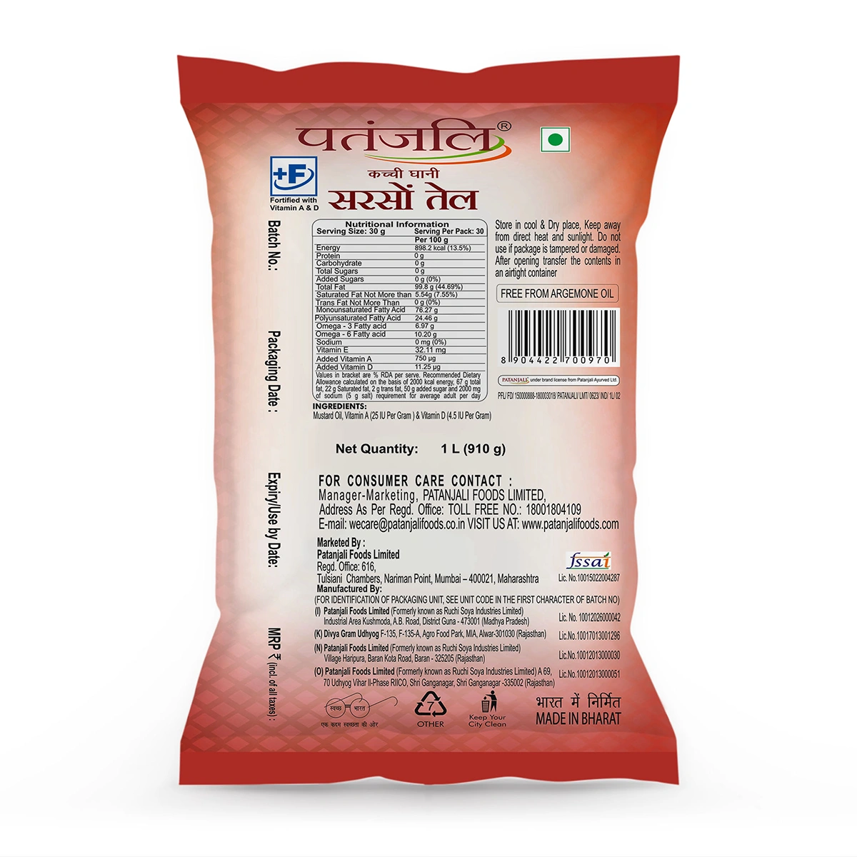 Mustard oil is a versatile and highly beneficial edible and cooking oil that is extracted from the seeds of the mustard plant. Patanjali Kachi Ghani Mustard Oil is a superior quality vegetable oil that is produced by pressing mustard seeds using the cold press extraction method, also known as "Kachi Ghani". This process involves crushing the seeds at low temperatures to preserve the oil's natural properties, antioxidants, and essential oils.