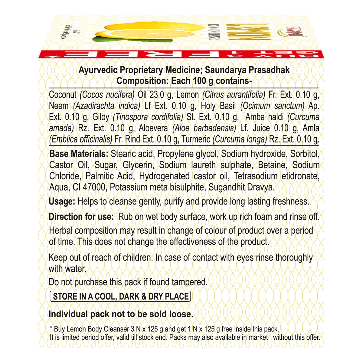 Patanjali Lemon Body Cleanser is infused with the refreshing scent of lemon. This body cleanser leaves the skin feeling clean and invigorated. Formulated with natural ingredients, it gently cleanses and nourishes the skin without stripping it of its natural oils. Patanjali Lemon Cleanser also contains lemon, aloevera, giloy, haldi, neem, tulsi, amla, and shudhha suhaga.