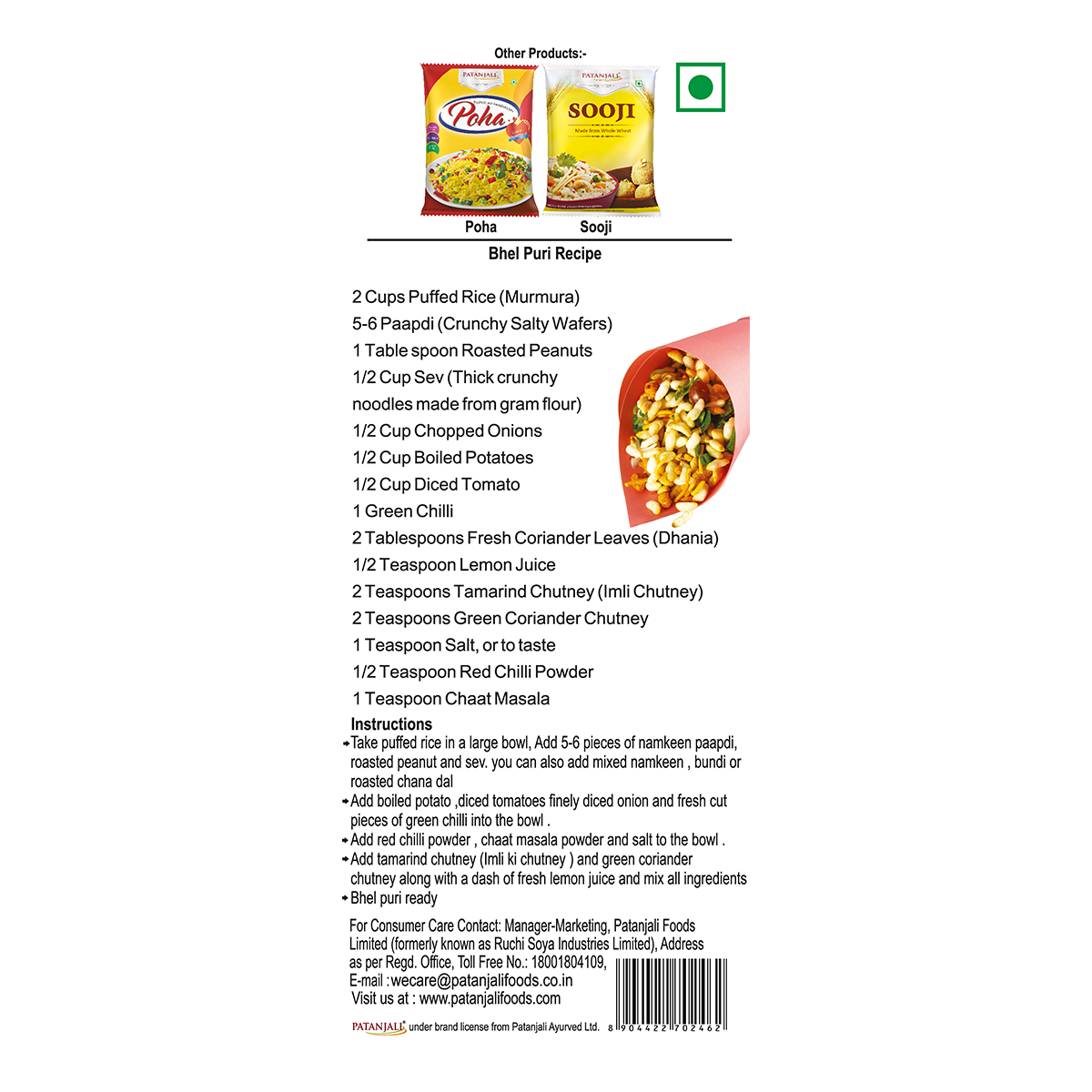 Patanjali Murmura (puffed rice) is made using the finest rice available. It is meticulously prepared by subjecting rice to the process of steaming. Patanjali Murmura finds its application in popular dishes like bhel puri, chaat, and prasad.
