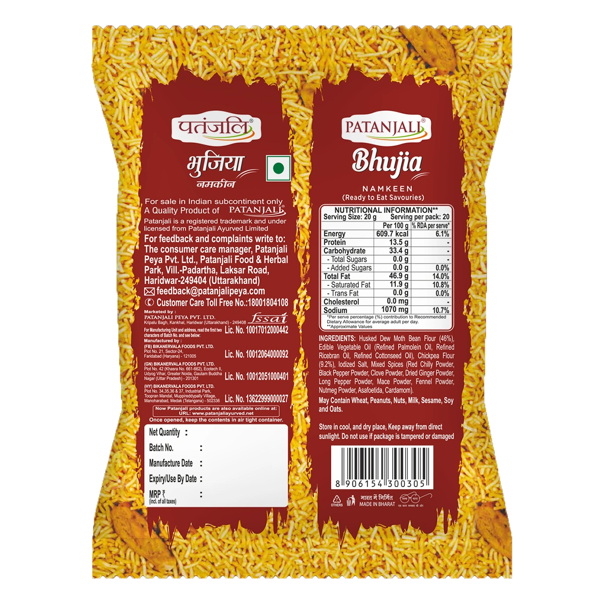 Celebrate snack times with crunchy Patanjali Bhujia. This namkeen is a healthy option to replace the usual fried, calorie-packed munchies. It is a hot-favorite at teatime.