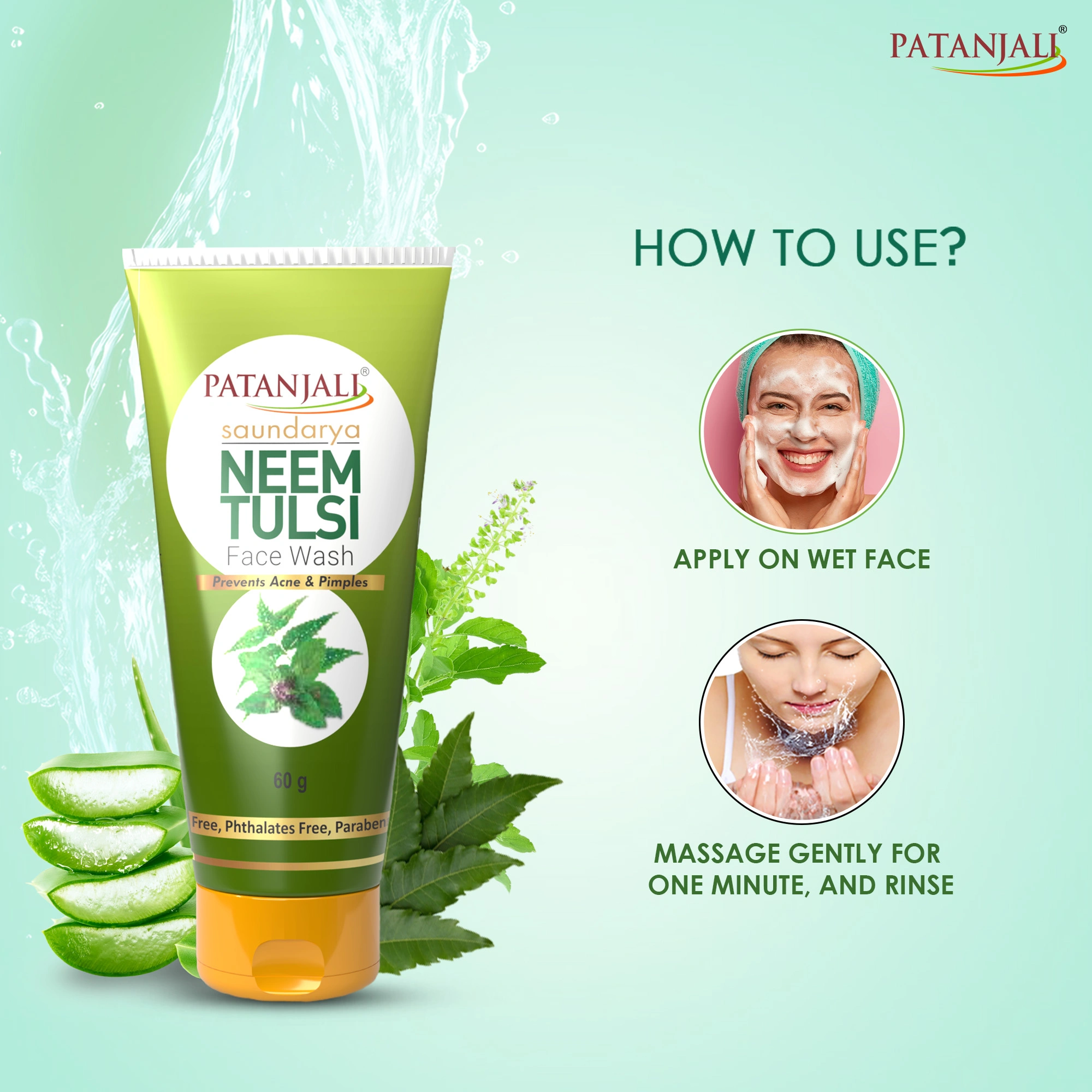 Patanjali neem-tulsi face wash is a soap-free herbal formulation to gently cleanse and moisturize your face. The antibacterial properties of neem and tulsi blend with the hydrating and rejuvenating effects of aloe vera to cleanse your skin of grime, dirt and pollutants and let it breathe easy all through the day. The skin feels fresh for long.