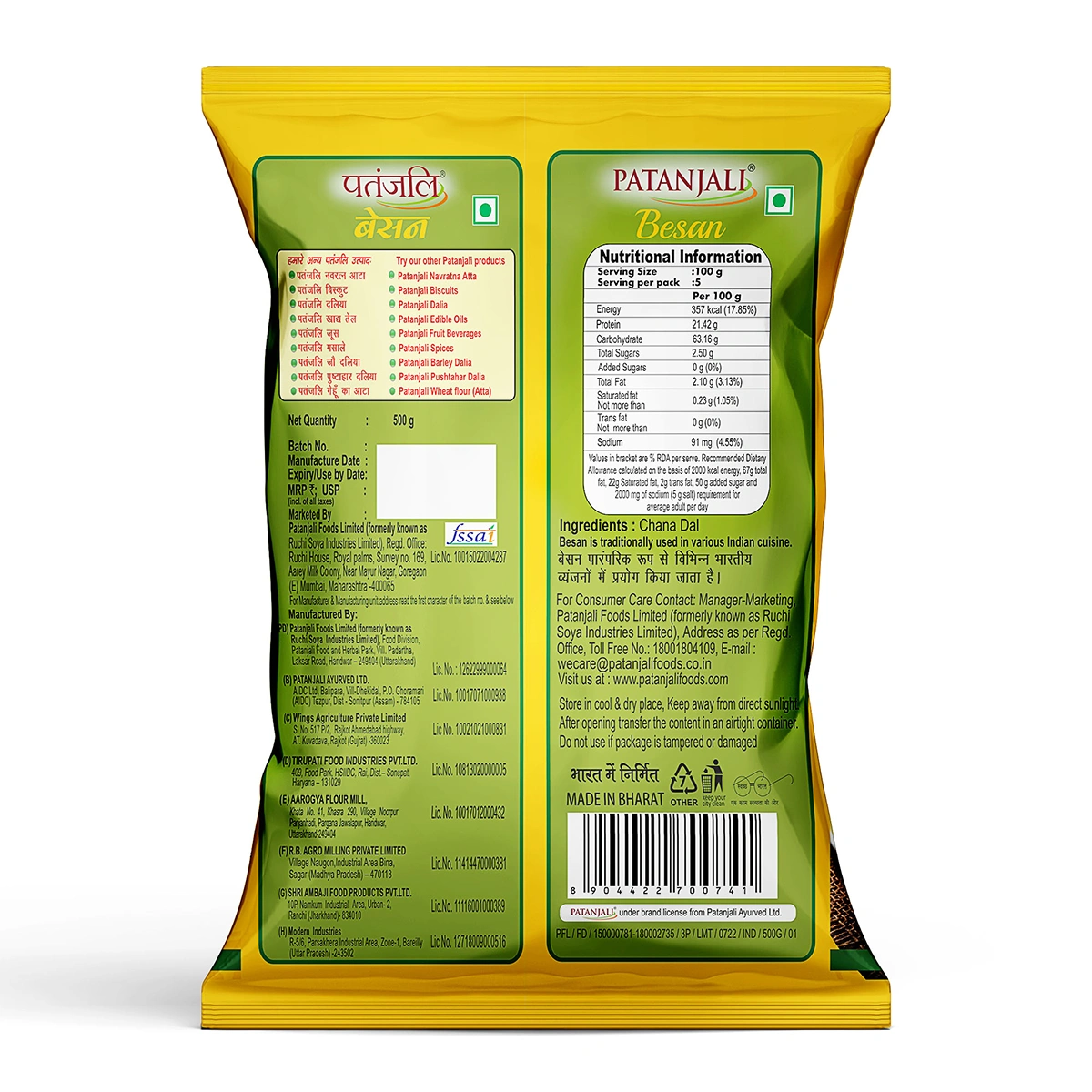 Patanjali Besan is made using premium quality grams that undergo various tests to ensure they meet Patanjali's specifications. This besan is gluten-free and is carefully processed to be free from insects, damaged grams, and dust.