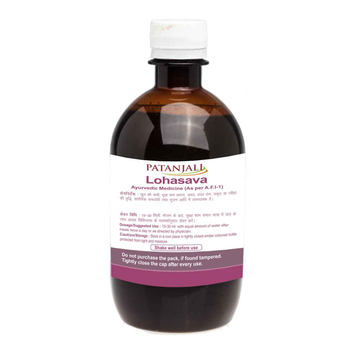 Patanjali Ayurveda Lohasava is a traditional Ayurvedic formulation designed to provide holistic support to the body. Packed with a blend of natural ingredients like Suddh Lauha (iron), Saunth (ginger), Amla, and other herbs, this tonic is particularly effective in addressing iron deficiency and improving overall health. Harad Chilka , Amla Dry , Baheda Fruit , Rind , Lohasav Prakshep , Saunth , Black Pepper(G), Pipal , Ajmod , Nagar Motha , Chitrak Mool , Vindinga, Loha Bhasm, Dhataki To be taken under medical supervision. Take 15-30 ml of Patanjali Ayurveda Lohasava with the equal amount of water after meals twice a day or as directed by the physician.