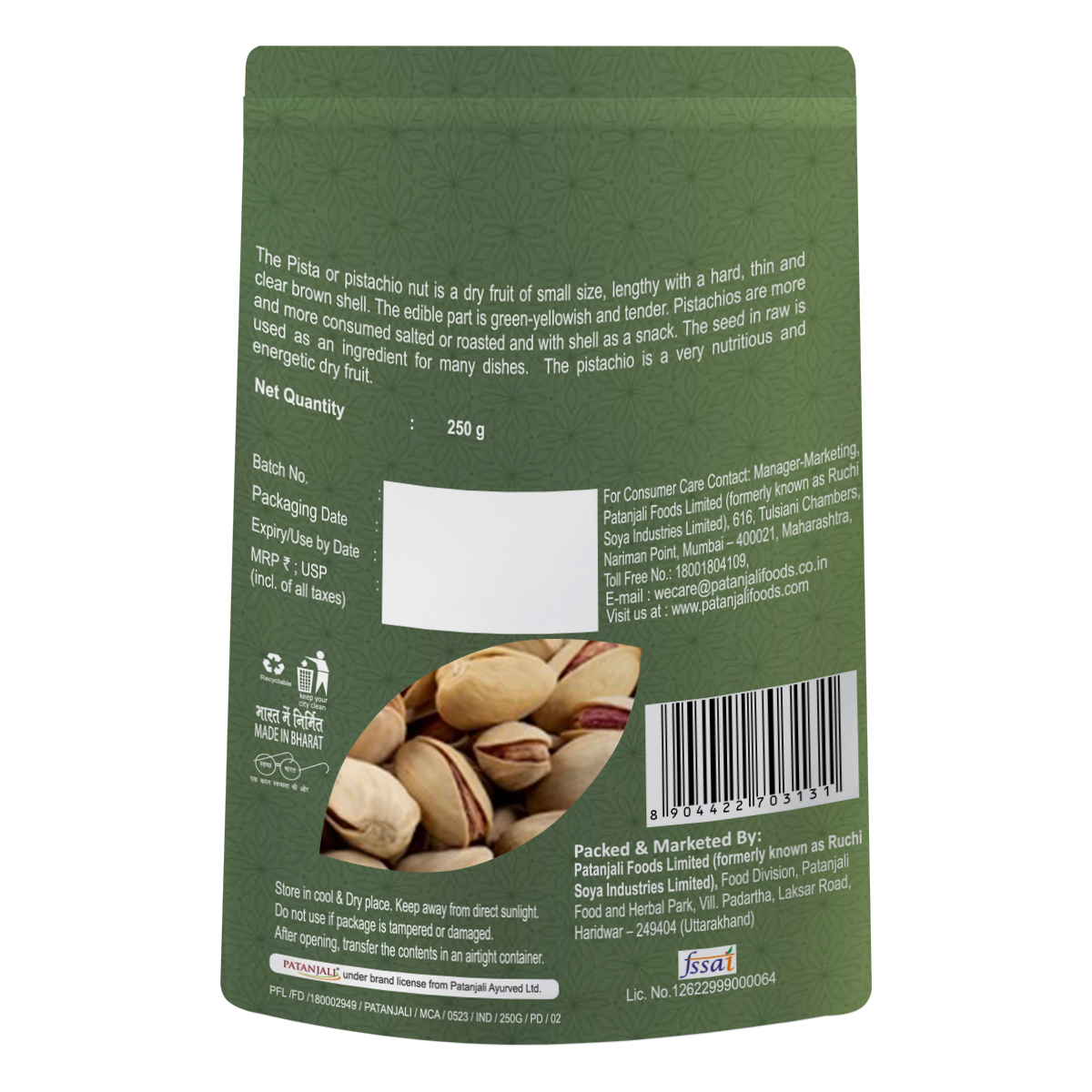 The pista or pistachio nut is a dry fruit of small size, lengthy with a hard, thin and clear brown shell. The edible part is green-yellowish and tender. Pistachios are more and more consumed salted or roasted, and with shell as a snack. The pistachio is a very nutrious and energetic dry fruit.