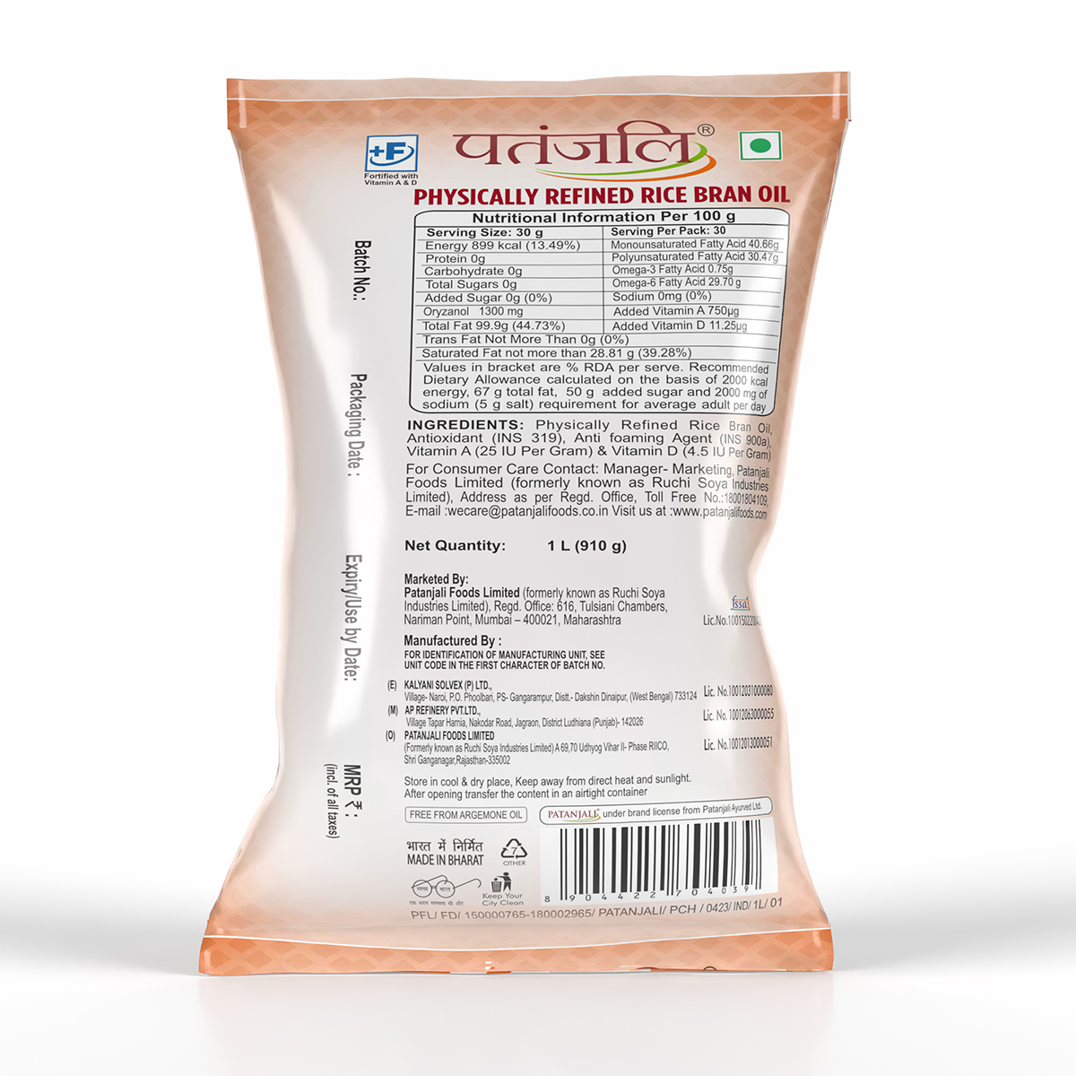 Rice bran oil is the oil extracted from the hard outer brown layer of rice called bran. Patanjali rice bran oil is a premium quality oil with mild flavor profile, making it suitable for stir frying and deep frying. Patanjali rice bran oil embodies excellence in taste, quality, and health benefits.