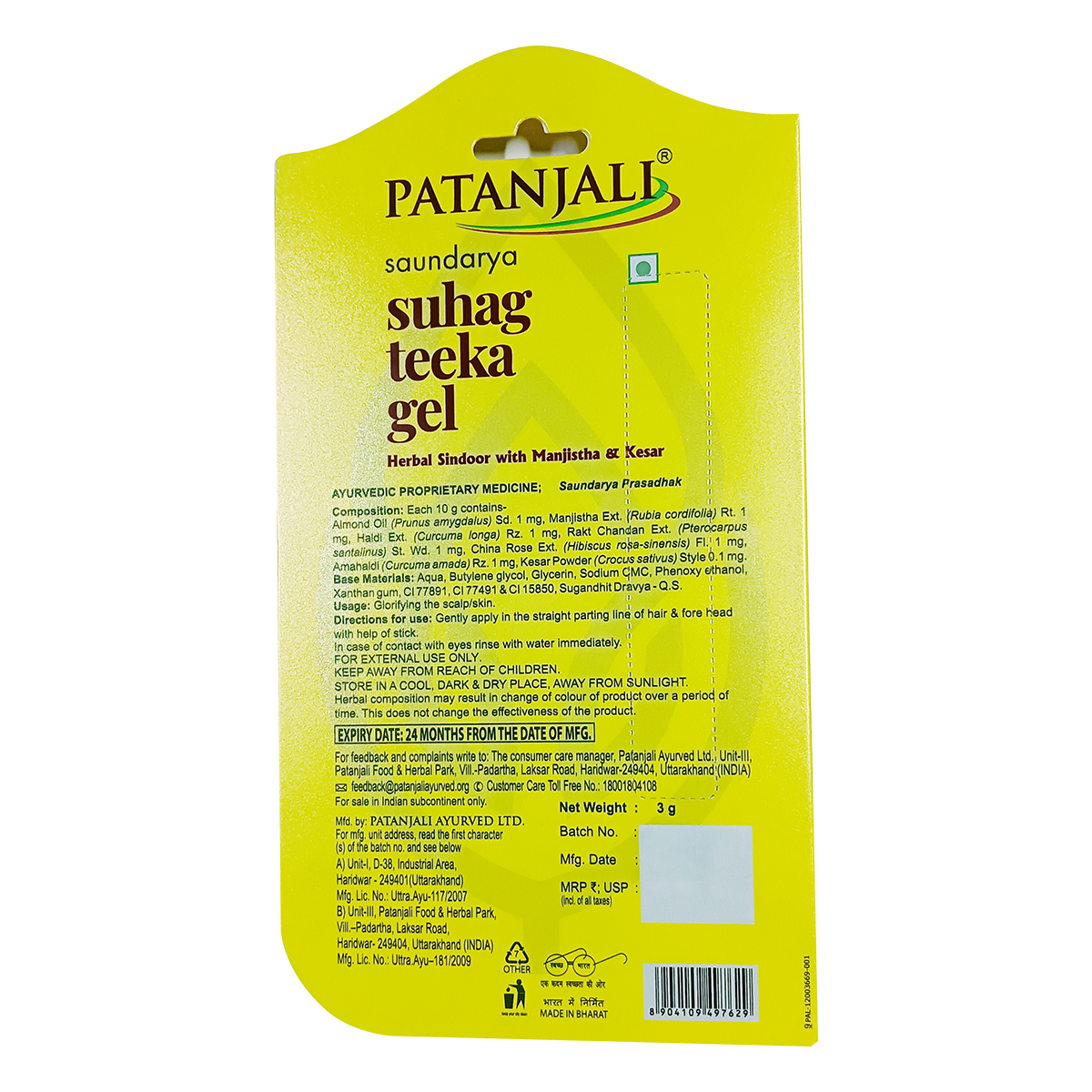 Gently apply in the straight parting line of hair & fore head with help of stick. In case of contact with eyes rinse with water Immediately.