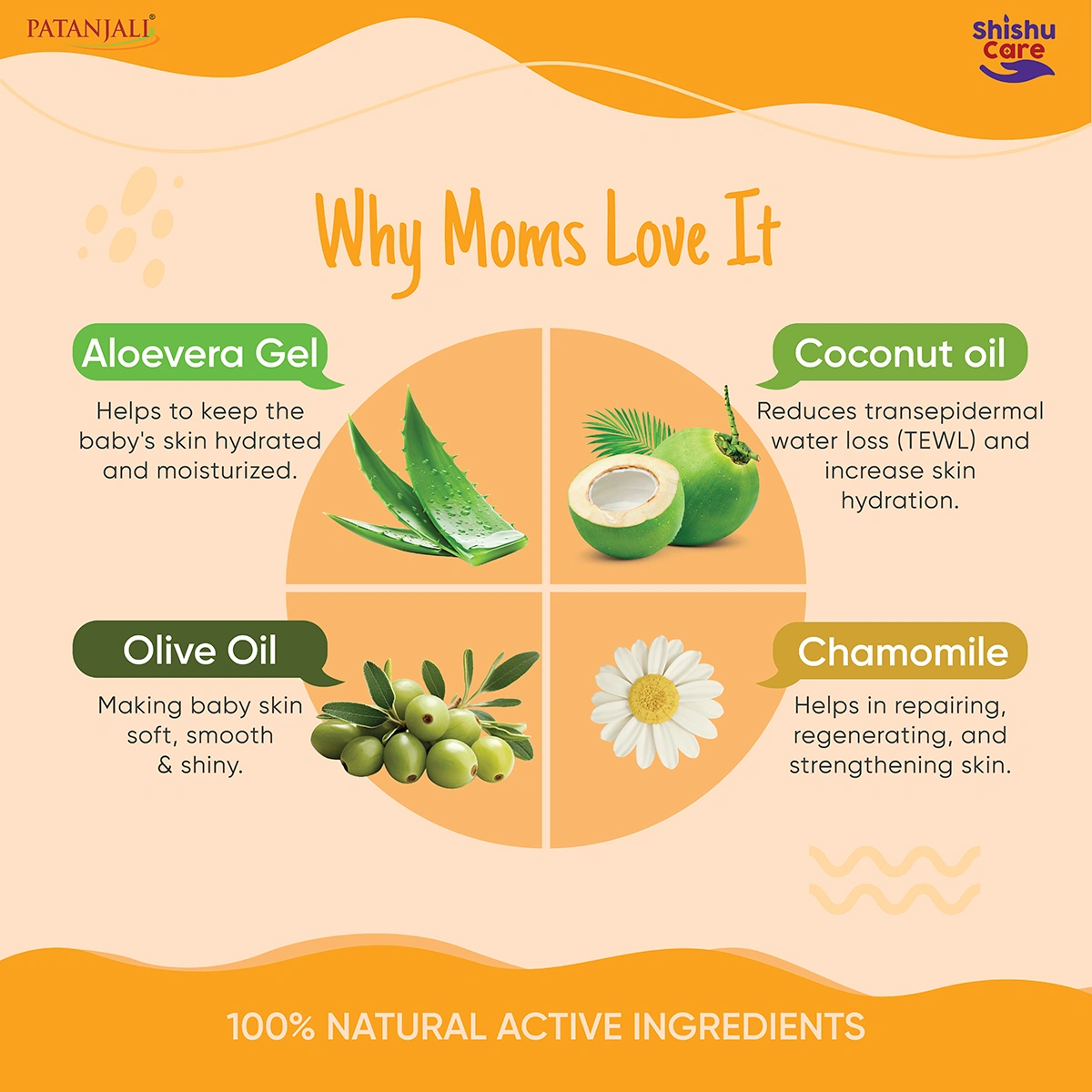 Nourish, soothes baby's sensitive skin & helps to prevent dryness, rashes and itching. Direction for use Apply on baby's skin liberally after baby's bath, nappy change and before bedtime