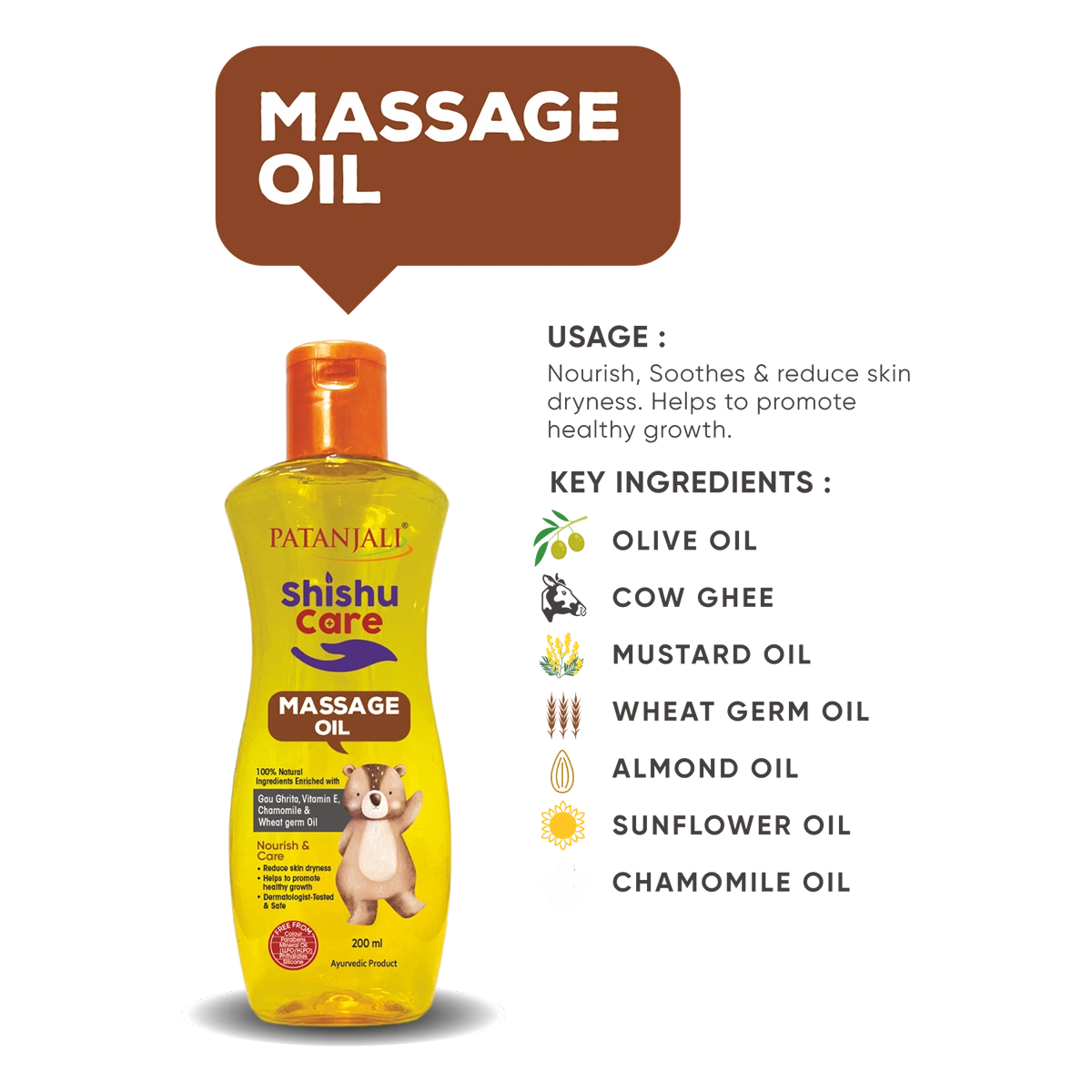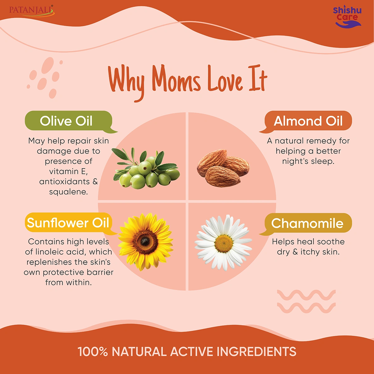 A special light oil, formulated for natural nourishment & gentle care of baby's delicate skin with Olive oil as a base, enriched with 100% Natural actives; Vitamin E, Almond Oil, Sunflower Oil, Mustard Oil, & Gau Ghrita that helps to reduce skin dryness & promotes healthy growth.