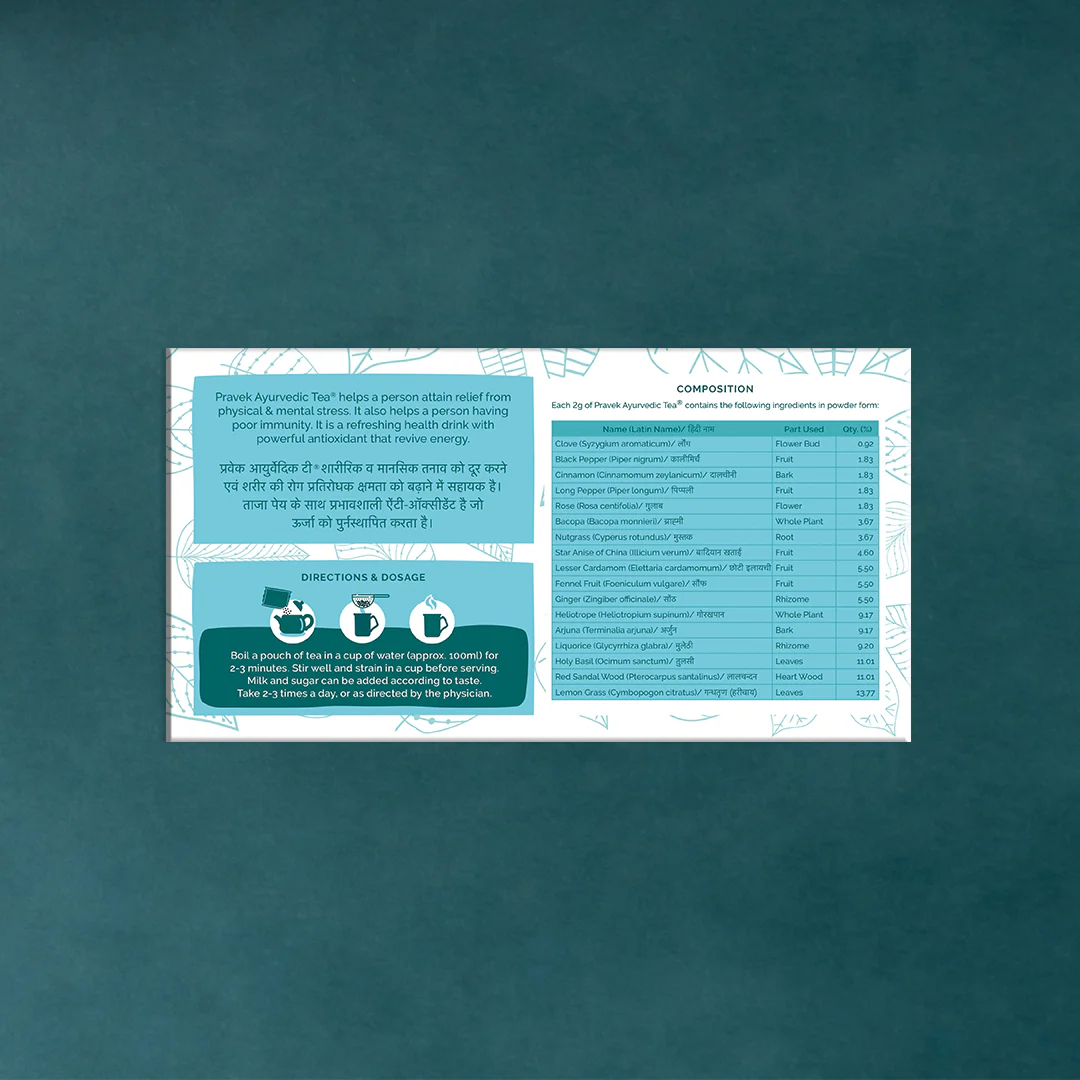 Pravek Ayurvedic Tea is an anti-oxidant and refreshing health drink with multiple health benefits. Ideal for people with a hectic and stressful lifestyle. It is a refreshing healthy drink that boosts immunity, It acts as a tonic for the brain & heart. It is a sugar-free formulation that contains no tea leaves, only herbs, along with essential vitamins & micronutrients.