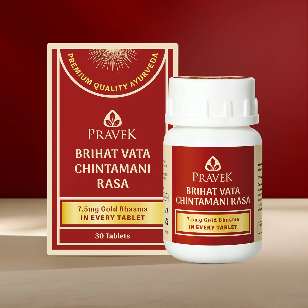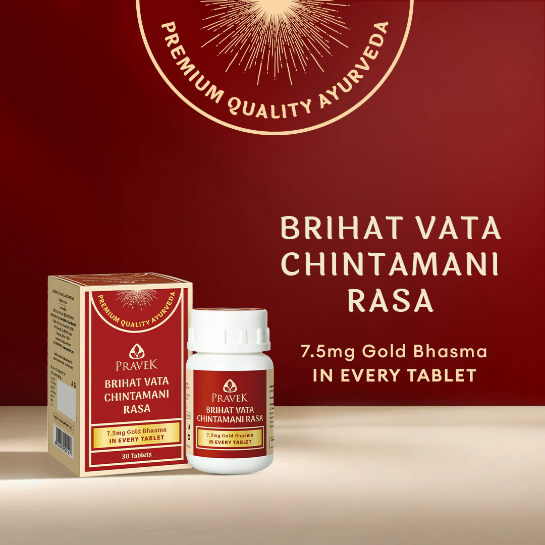 Brihat Vata Chintamani Rasa is a classical ayurvedic remedy made with Bhasma or Ash, after an elaborate process of purification. Each tablet containing 7.5 mg of Swarna Bhasma, purified gold, has the following benefits: