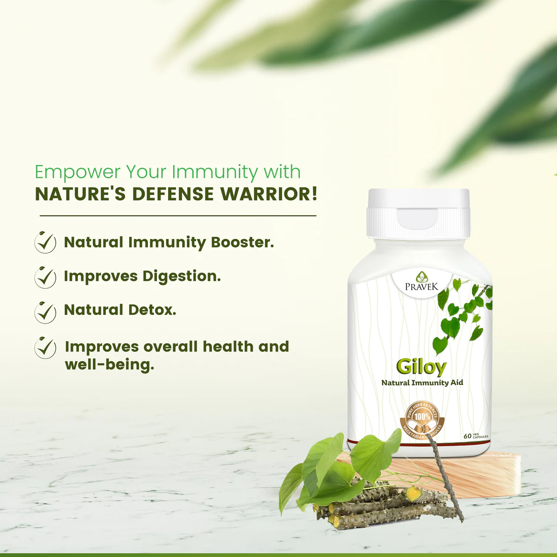 Giloy, commonly known as Amrita and Guduchi, is known to boost immunity and strength of an individual due to its Rasayana and Balya properties. Other health benefits Giloy Capsules are: